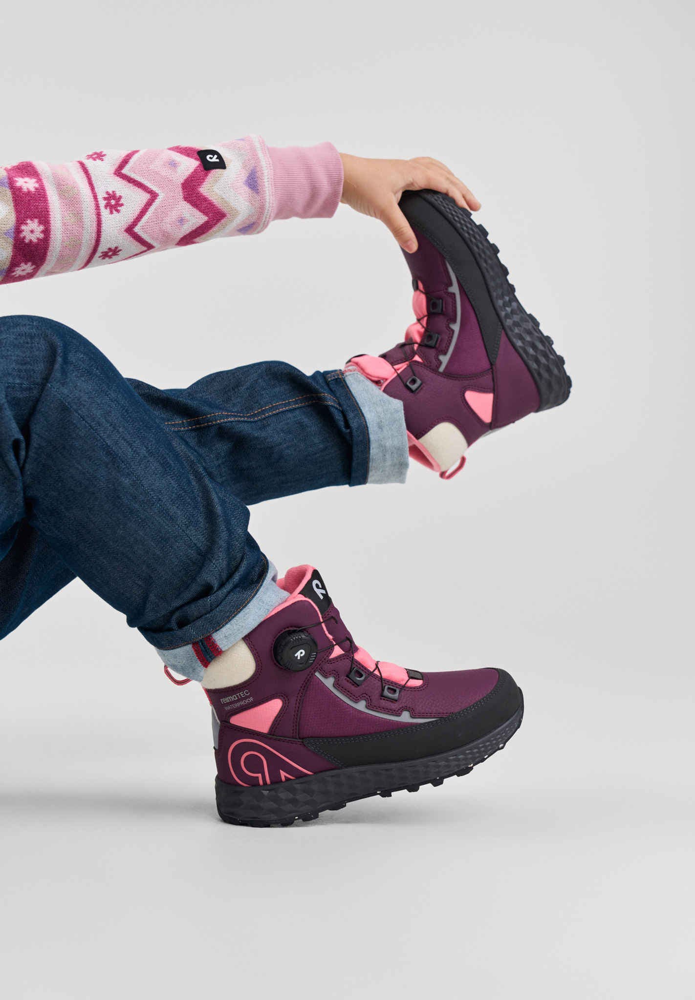 - Elastyczna i lekka podeszwa środkowa Reima EVA oraz przyczepna podeszwa z gumy zapewniają komfort i dobrą przyczepność.