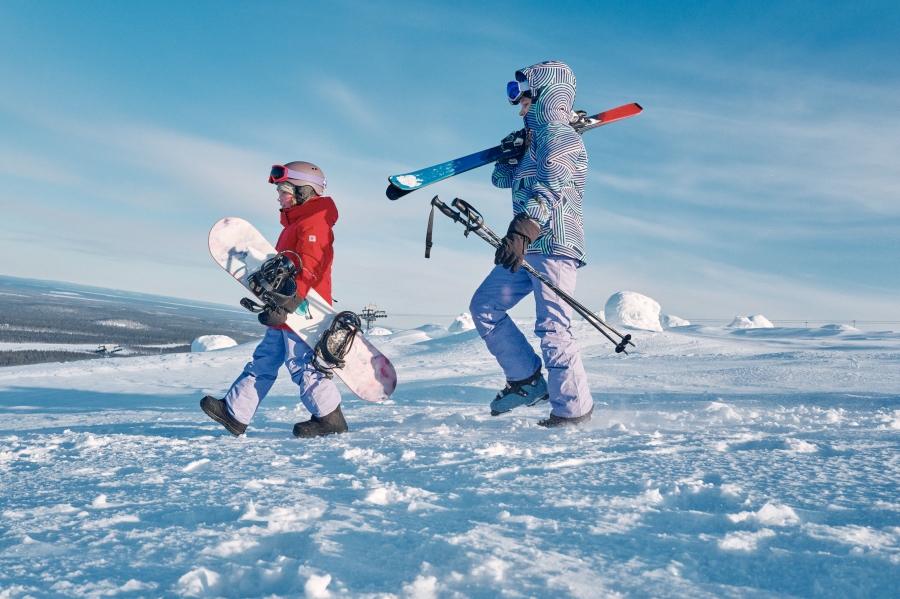 - Gumy i stopery przy nogawkach oraz wewnętrzne stuptuty zapobiegają przedostawaniu się śniegu do butów.