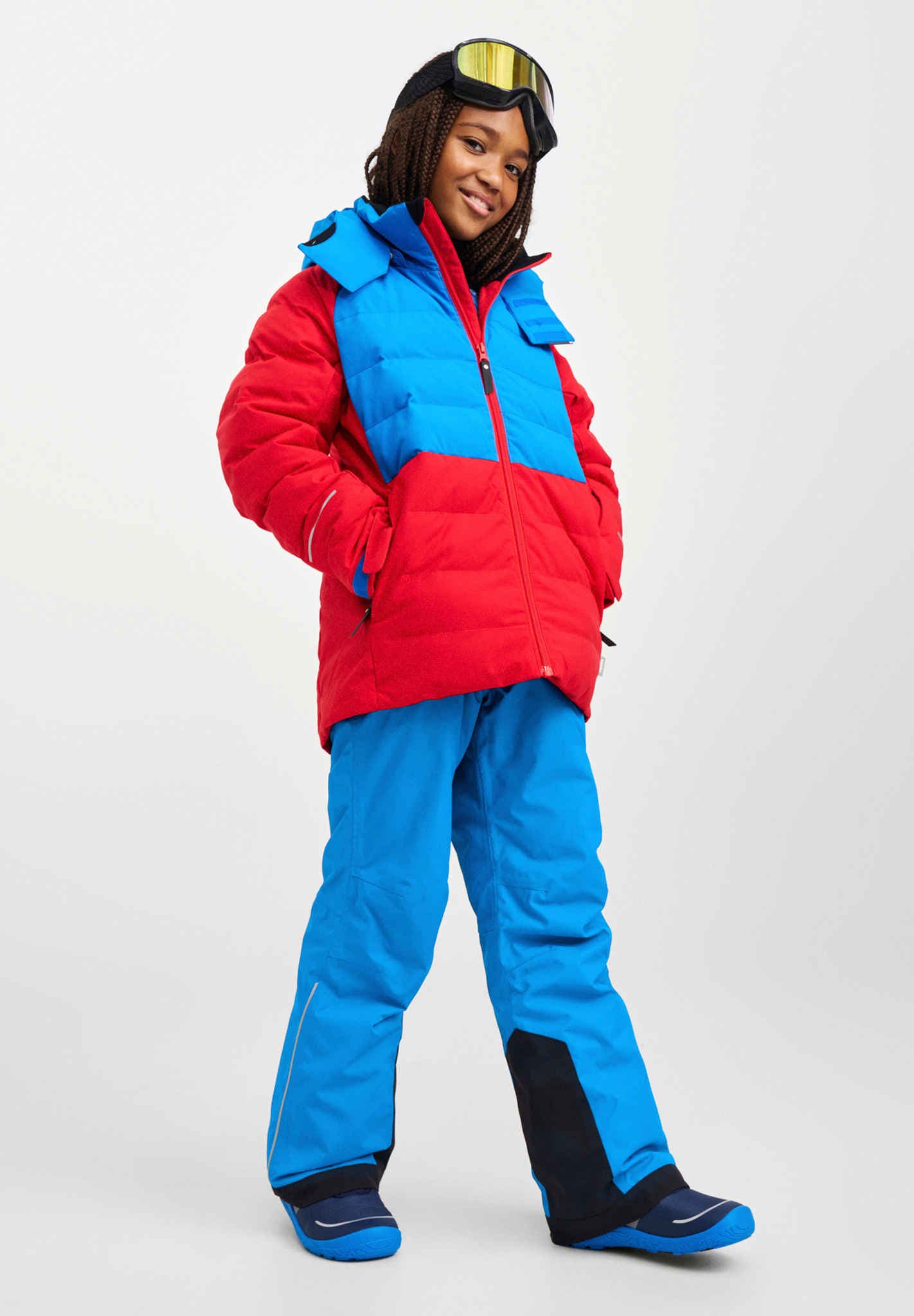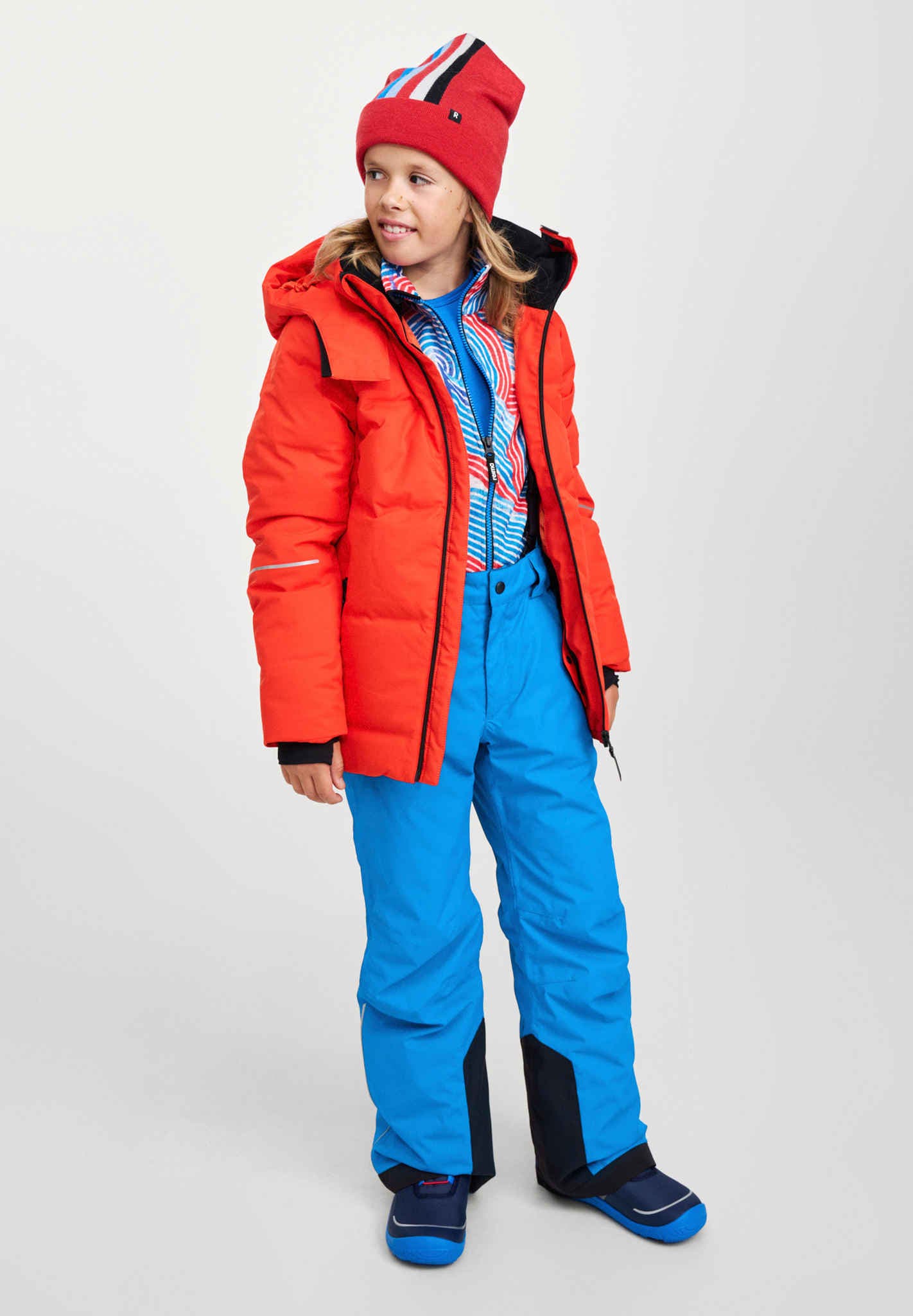 - Funkcje narciarskie, w tym pasy przeciwśnieżne i możliwość przypięcia do kurtek Reima