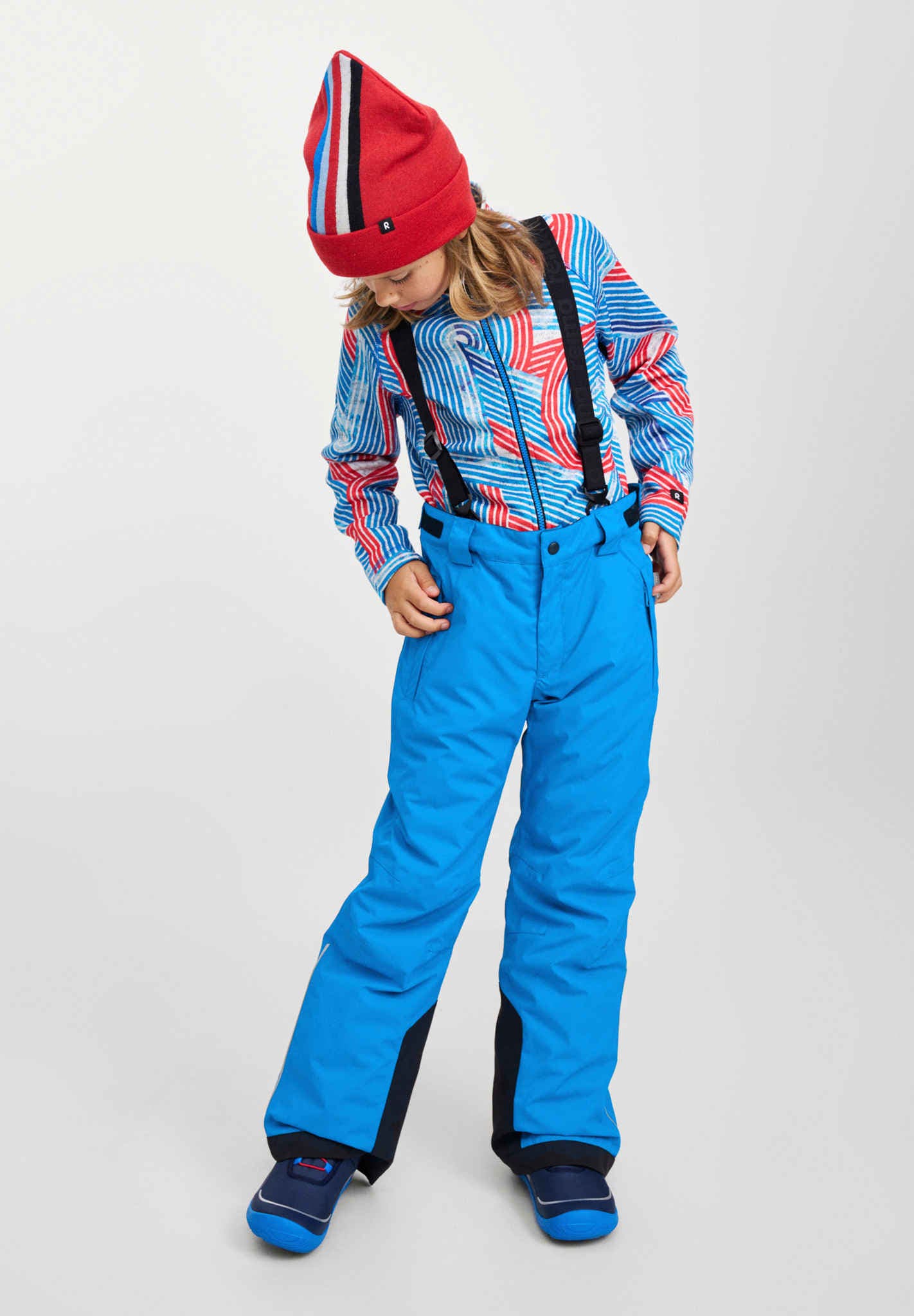 - Specjalne zatrzaski w pasie umożliwiają przypięcie do wielu modeli kurtek narciarskich Reima