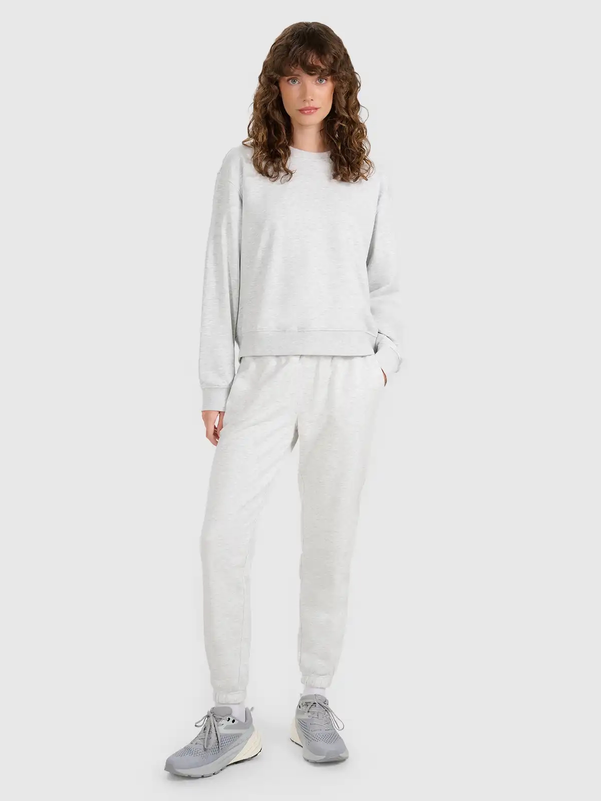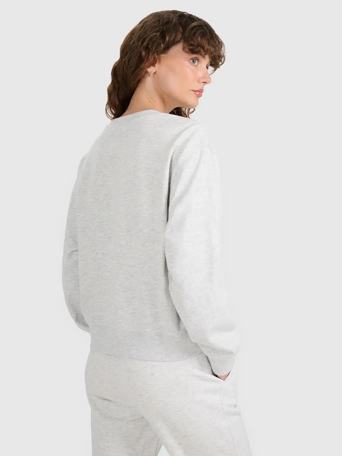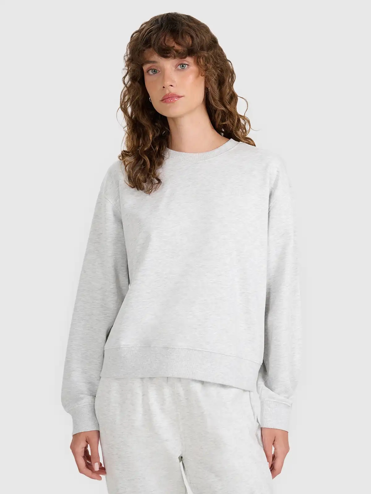 Bluza wykonana z dzianiny typu french terry, charakteryzującej się gładką powierzchnią zewnętrzną oraz miękkim wnętrzem o strukturze pętelek. Materiały dobrano tak, aby zapewnić przyjemne uczucie w dotyku, dobrą trwałość i komfort termiczny podczas chłodniejszych dni. Konstrukcja bez dodatkowego podszycia sprawia, że bluza oddycha i łatwo łączy się warstwowo z innymi elementami garderoby.