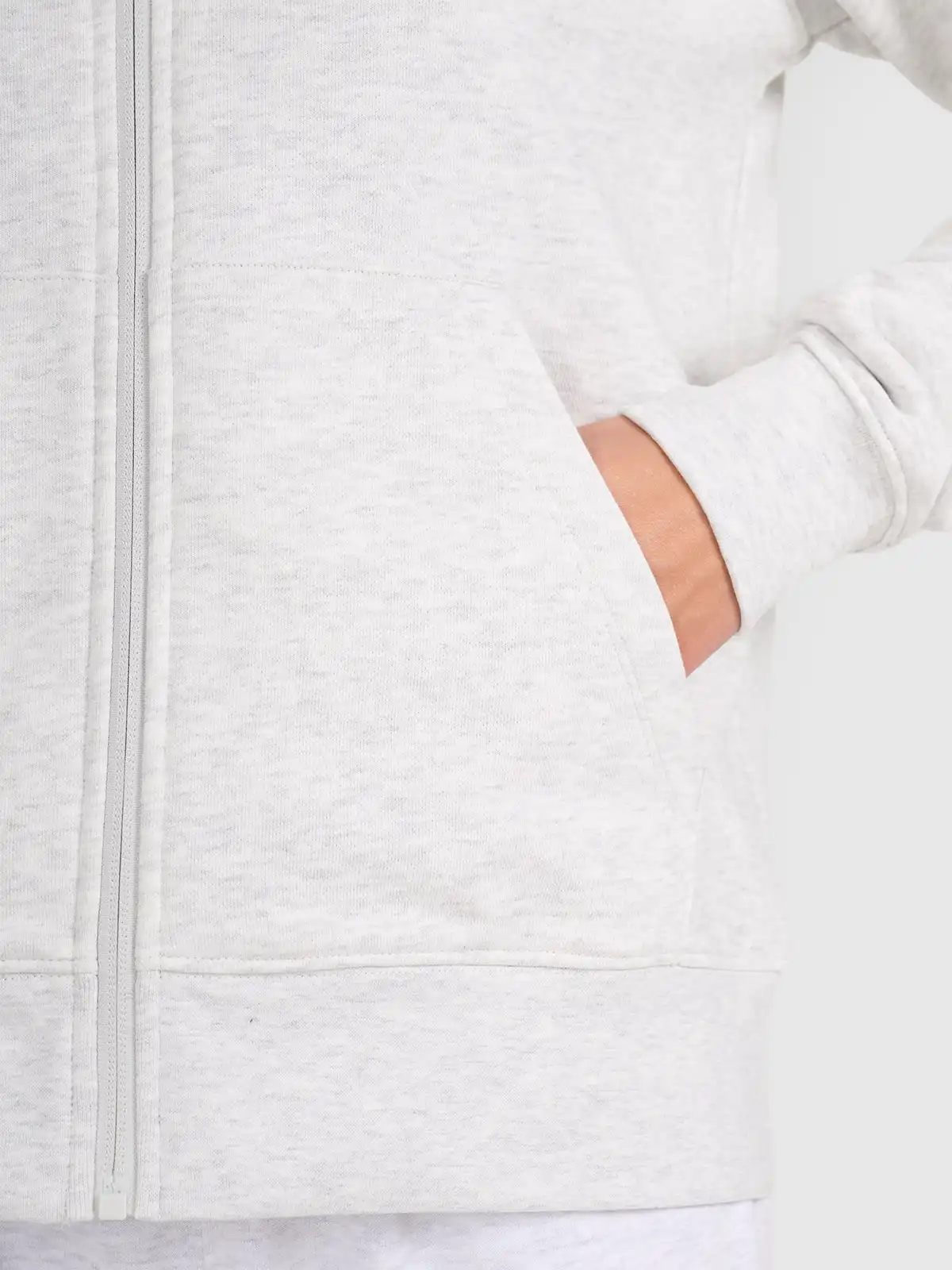 Bluza posiada pełen zamek, który ułatwia szybkie zakładanie i dopasowywanie wentylacji podczas wysiłku. Kaptur z regulacją chroni przed wiatrem i chłodem, a dopracowane wykończenia przy szyi minimalizują tarcie. Przemyślane kroje i elastyczny materiał zapewniają swobodę ruchu, natomiast miękka, szczotkowana od wewnątrz struktura utrzymuje przyjemne ciepło bez nadmiernego przegrzewania. Elastyczne ściągacze przy mankietach i na dole bluzy utrzymują dopasowanie, zapobiegając uciekaniu ciepła podczas intensywnego wysiłku.