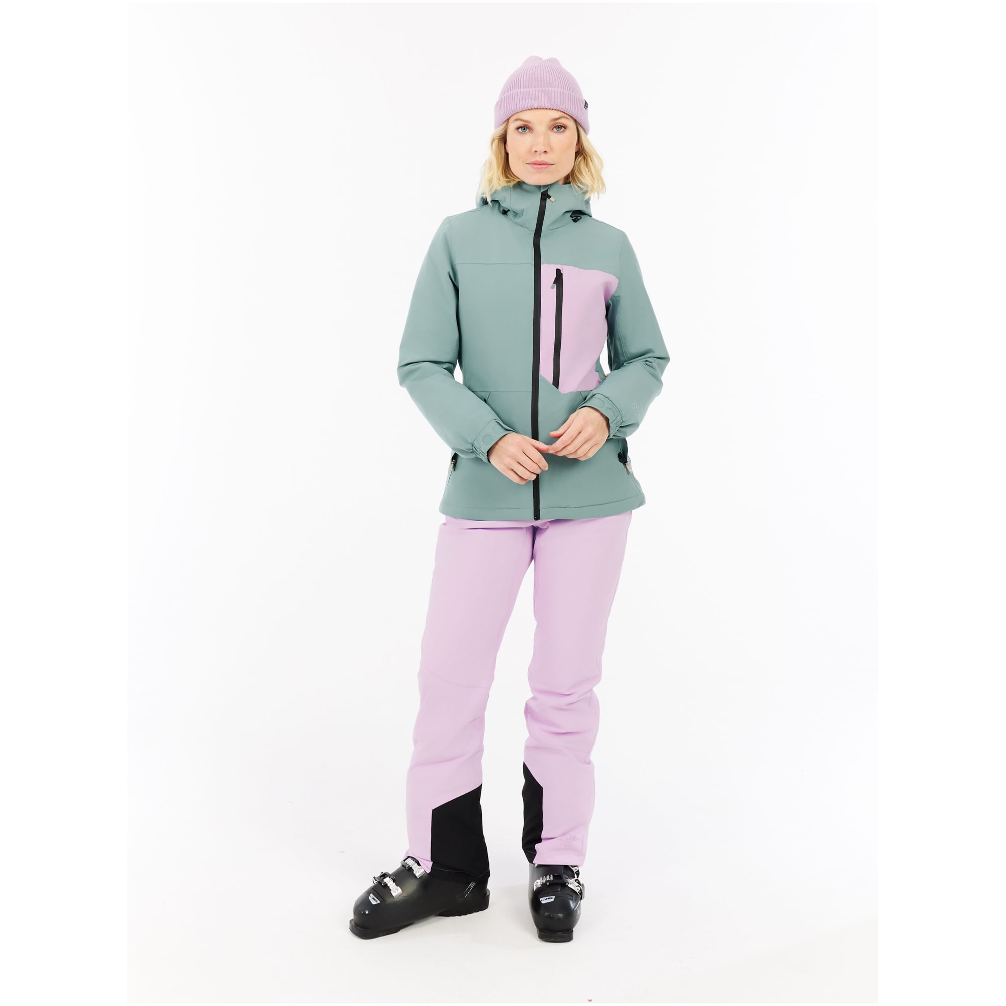 - Kieszenie na karnet i gogle ułatwiają organizację sprzętu na stoku.