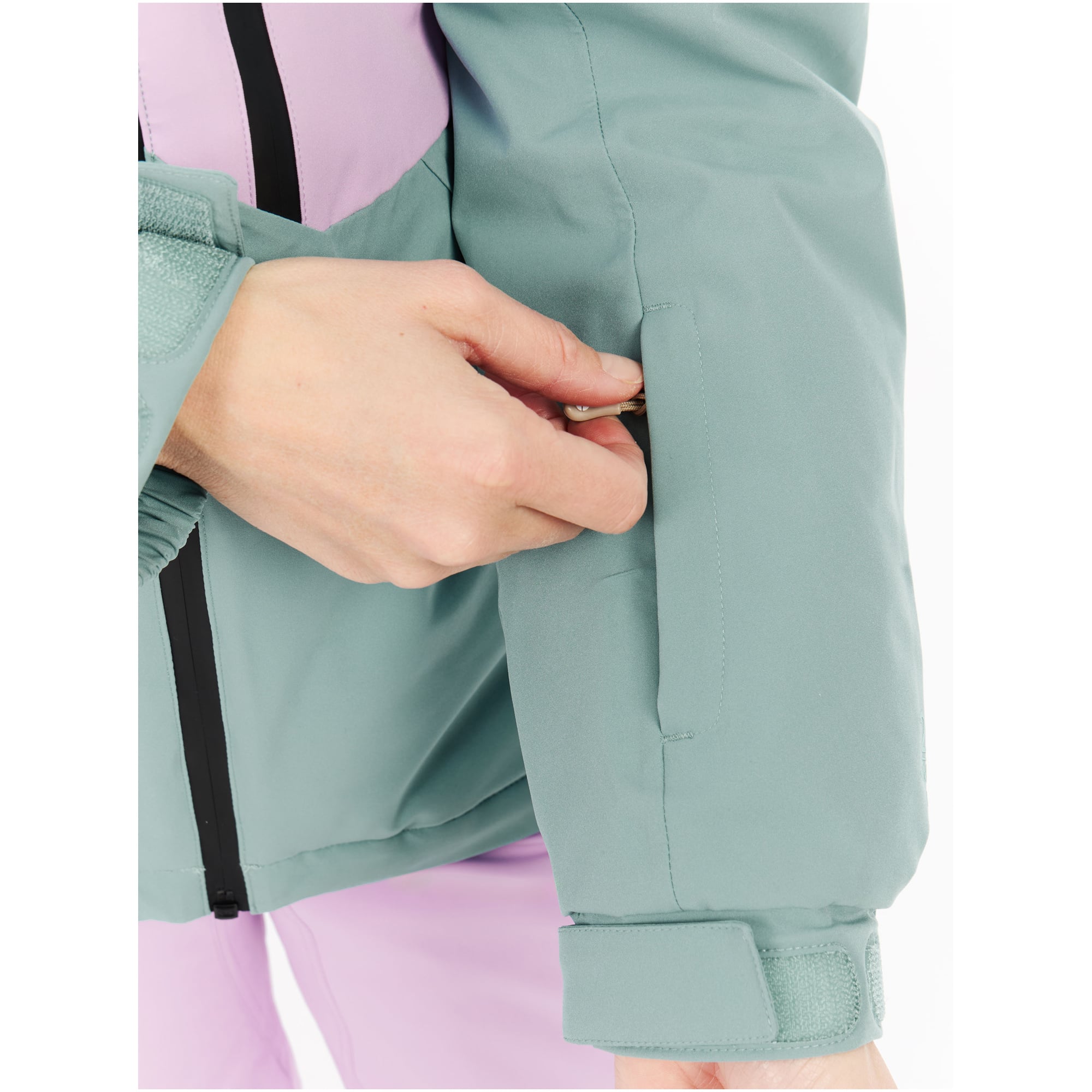 - Wewnętrzne mankiety z otworem na kciuk blokują zimne powietrze i śnieg.