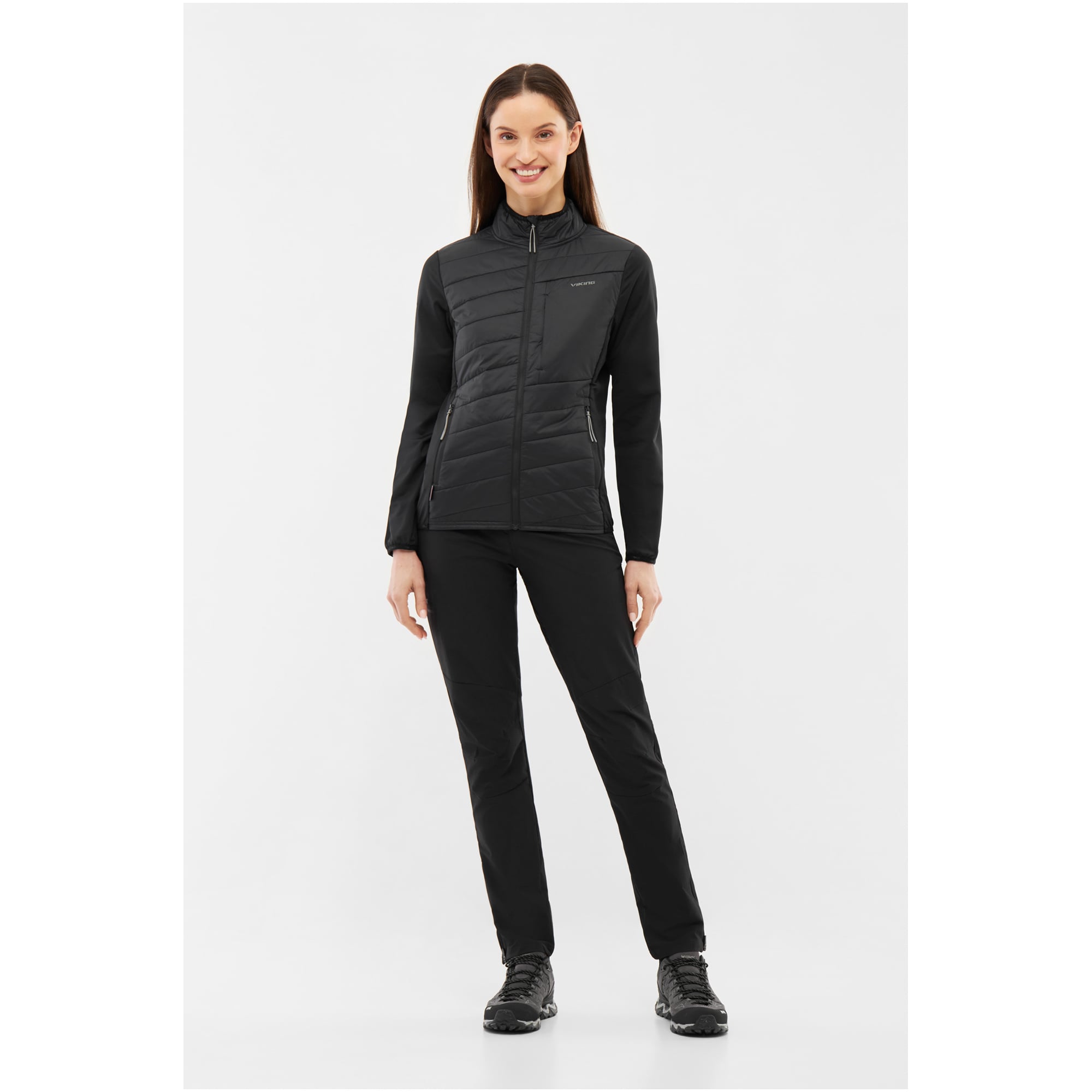Kurtka Viking Zemu Lady w czarnym kolorze to hybrydowa warstwa ocieplna dla aktywnych kobiet. Idealna na chłodne dni podczas wędrówek, biegania czy codziennych aktywności na świeżym powietrzu, łączy ciepło syntetycznej izolacji z elastycznością i oddychalnością.