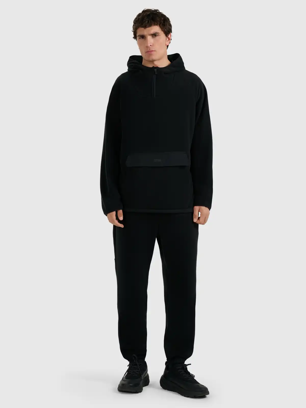 Projekt uwzględnia praktyczność - duża kieszeń umieszczona z przodu służy do ogrzewania dłoni i przechowywania drobnych przedmiotów w czasie aktywności. Wykończenia przy mankietach i u dołu zapobiegają uciekaniu ciepła, a gładkie wnętrze polaru minimalizuje mechacenie i zapewnia przyjemne uczucie w dotyku. Materiał jest lekki, szybkoschnący i łatwy w pielęgnacji, co przekłada się na wygodę użytkowania na co dzień.