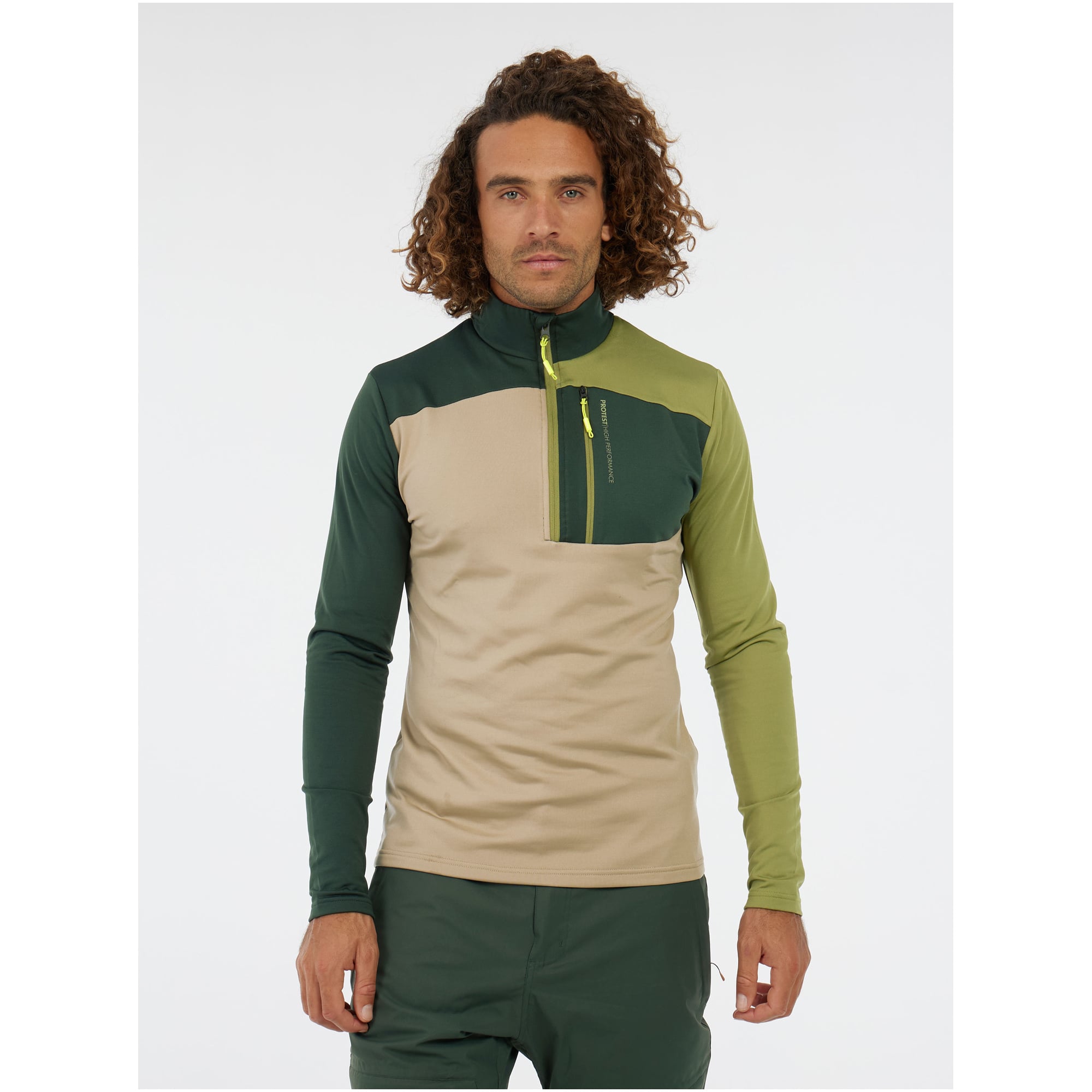 Cechy PROTEST Bluzka z długim rękawem zapinana na zamek 1/4 męska Prtdraw zielona