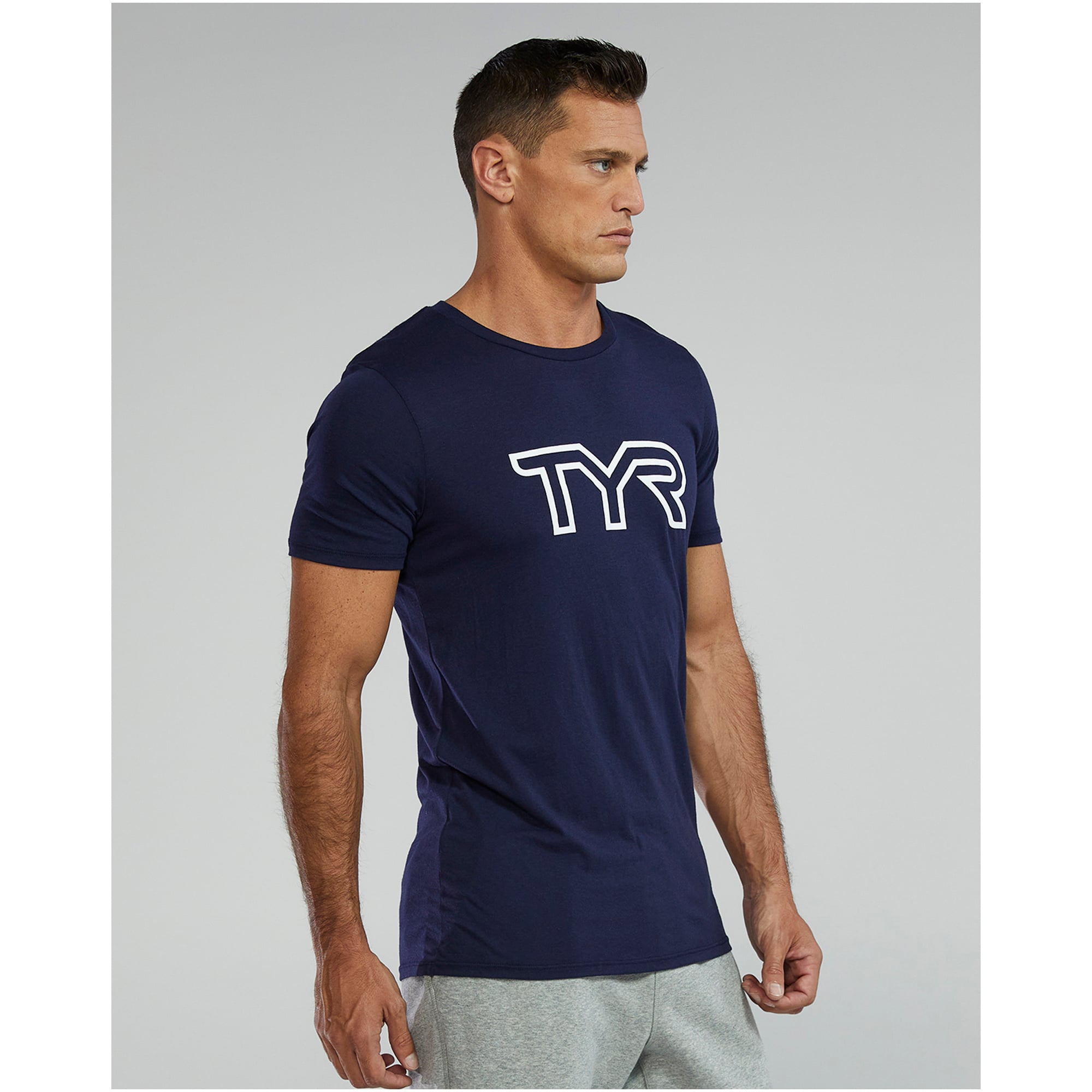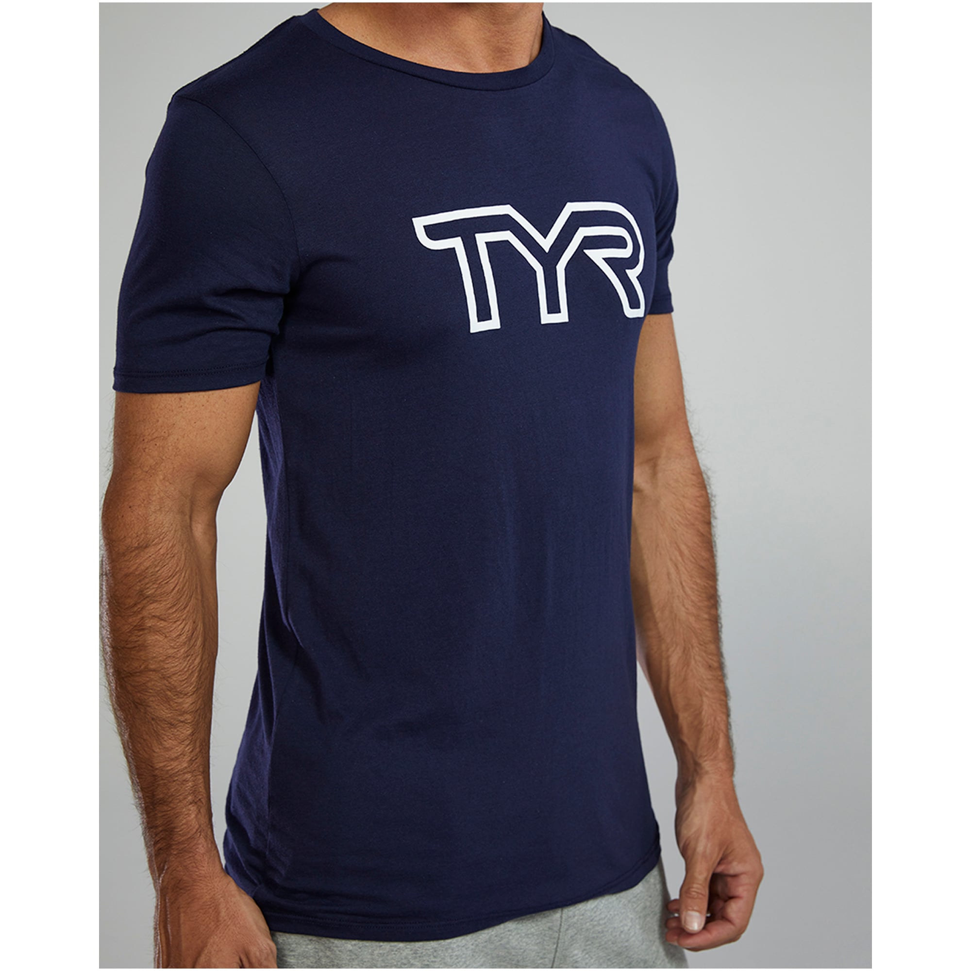 Wybieraj rozmiar zgodnie z tabelą TYR, aby uniknąć zbyt luźnego lub ciasnego kroju – koszulka powinna lekko przylegać bez ucisku w okolicach ramion.