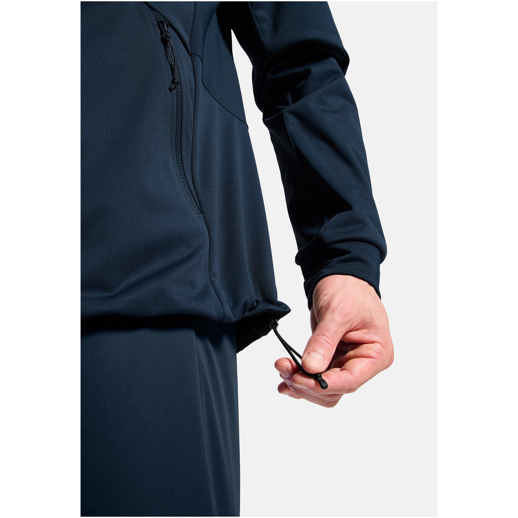 Kurtka wykorzystuje trójwarstwowy softshell z recyklingowanego poliestru z technologią Windproof, która skutecznie chroni przed wiatrem, jednocześnie umożliwiając odprowadzanie wilgoci. Panele z dżerseju pod pachami i wentylacja z tyłu zapewniają dodatkową oddychalność w miejscach o największym poceniu. Przeznaczona do narciarstwa biegowego i biegów przełajowych, sprawdza się w zmiennych warunkach zimowych, gdzie wymagana jest lekkość i mobilność.