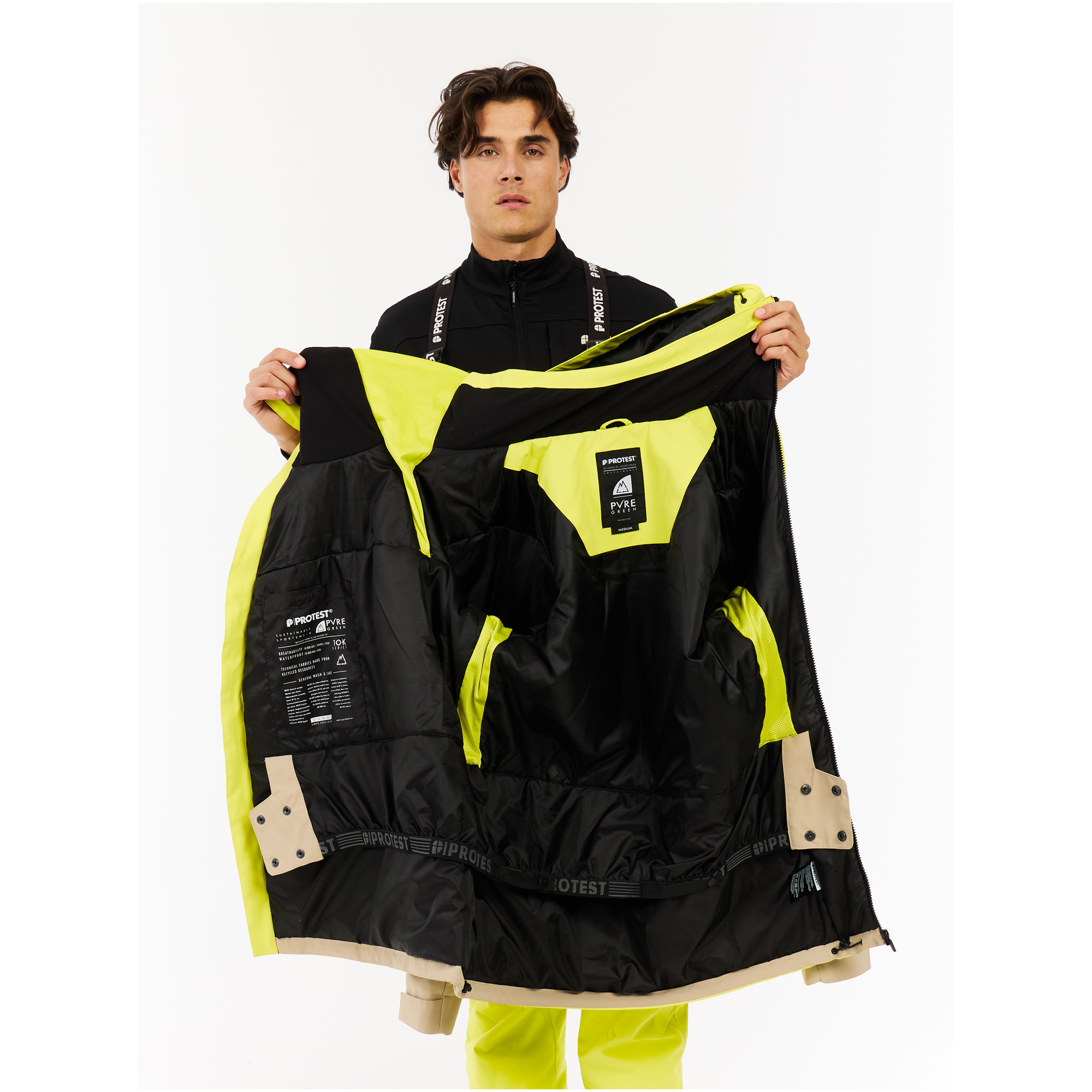 Kurtka wykonana z tkaniny Oxford z recyklingu z kolekcji PVRE GREEN, z membraną TPU i trwałą powłoką hydrofobową. Uszczelnione szwy w kluczowych miejscach oraz luźny krój z długimi rękawami gwarantują swobodę ruchów podczas jazdy na nartach lub snowboardzie. Idealna na zimowe sesje na stoku, gdzie liczy się ochrona i wentylacja.