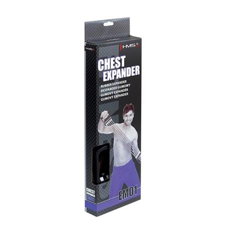 EM01 HMS - to przyrząd do ćwiczeń górnych partii mięśniowych. Składa się z pięciu lin zamocowanych do dwóch uchwytów wykonanych z wytrzymałego tworzywa. aciągi ekspandera powstały z specjalnej gumy. Materiał posiada zwiększoną wytrzymałość na rozciąganie. Siłę oporu reguluje się poprzez założenie odpowiedniej ilości lin. EM01 HMS jest skutecznym sposobem wzmocnienia i wysmuklenia ramion, klatki piersiowej, brzucha, pleców oraz miednicy. Ekspander może być stosowany do ćwiczeń ogólnorozwojowych oraz rehabilitacyjnych.