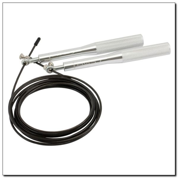 Uchwyty z aluminium wyposażone w łożyska i obrotowe głowice umożliwiają precyzyjne, szybkie ruchy bez splątania linki. Skakanka sprawdza się w treningach CrossFit, fitness i cardio, poprawiając kondycję i koordynację. Regulacja długości ułatwia dostosowanie do różnych ćwiczeń.Okiem eksperta