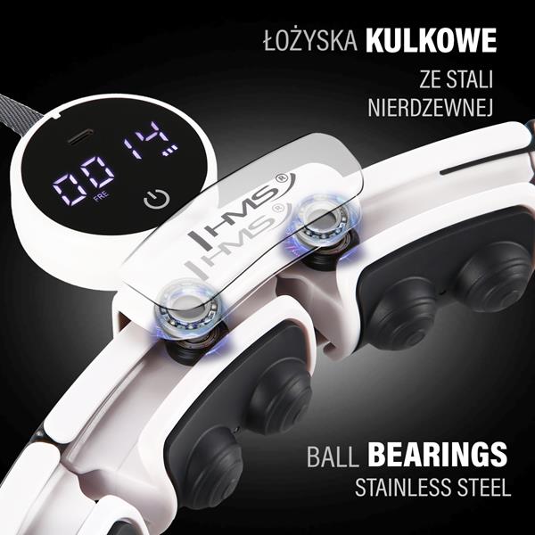 Hula hop HHM16 składa się z 16 segmentów z łożyskami kulkami ze stali nierdzewnej i sprężynami absorbującymi wstrząsy. Magnesy w każdym segmencie generują pole magnetyczne podczas obrotów, wspomagając masaż mięśni brzucha, bioder i pleców. Piłka grawitacyjna z regulowanym paskiem zwiększa siłę odśrodkową, intensyfikując ćwiczenia. Pas neoprenowy BR163 stabilizuje talię i wspiera termogenezę. Nadaje się do treningów w domu dla dorosłych i dzieci.