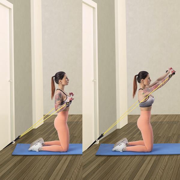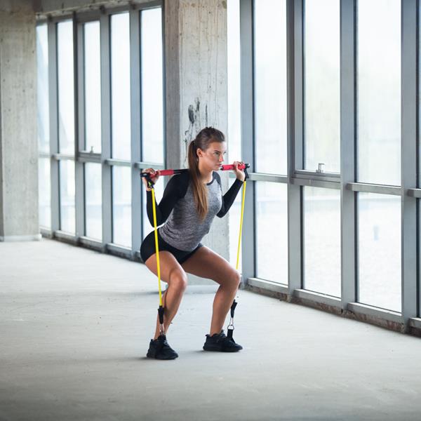 - W zestawie: drążek x1, gumy x6, opaski na kostkę x2, opaski pod stopy x2, karabińczyki x4, uchwyt pod drzwi x1, pokrowiec x1
