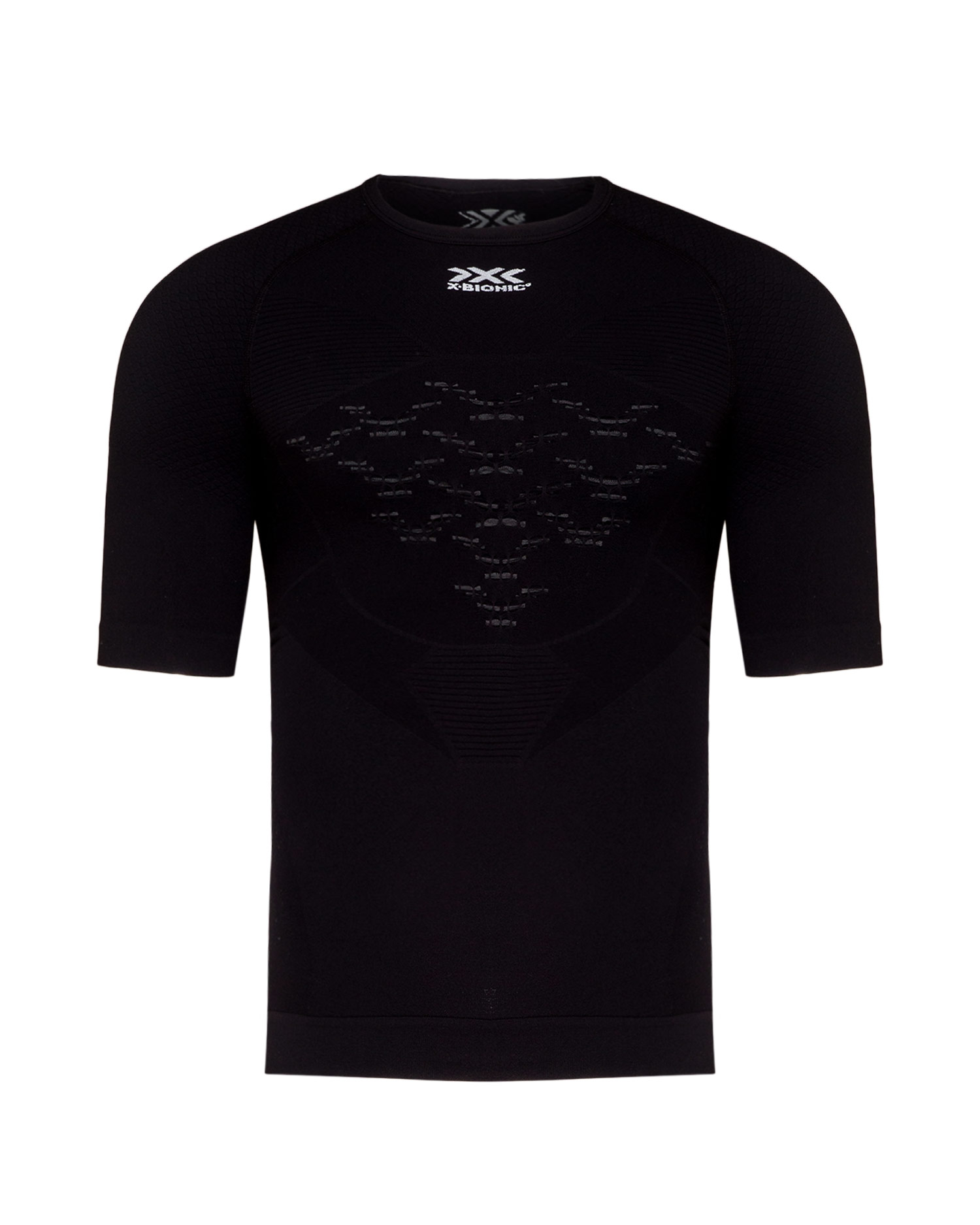 Model wykorzystuje zaawansowaną, strefową konstrukcję tkaniny, która inteligentnie wspiera chłodzenie tam, gdzie ciało traci najwięcej ciepła, oraz izolację w miejscach narażonych na wychłodzenie. Przestrzenna struktura 3D w newralgicznych strefach zwiększa powierzchnię odparowywania potu, a specjalne kanaliki wentylacyjne zapewniają stały przepływ powietrza i szybkie schnięcie. Materiał jest elastyczny i dopasowuje się do sylwetki, co poprawia swobodę ruchu oraz utrzymuje koszulkę blisko ciała, aby systemy termoregulacyjne działały skuteczniej.