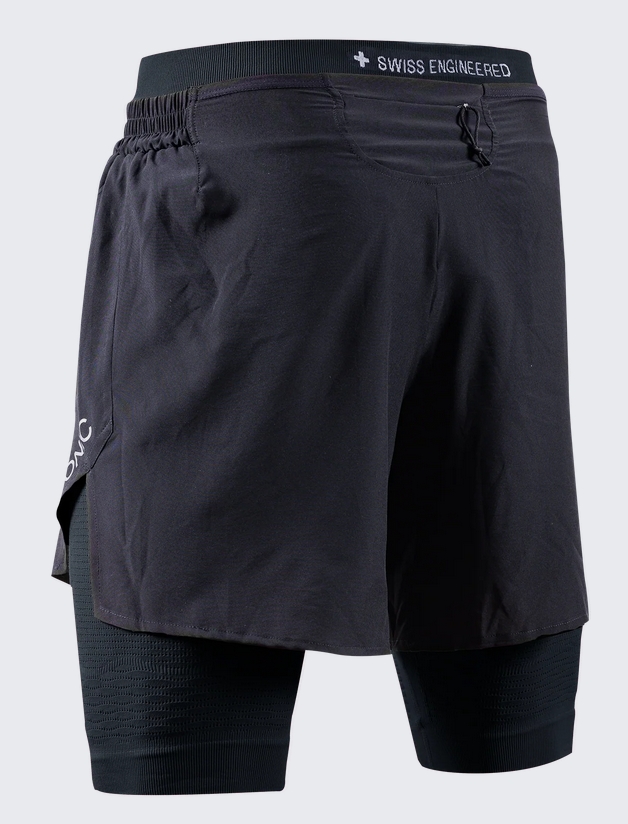Spodenki łączą zewnętrzną warstwę z elastycznym pasem regulowanym sznurkiem i wewnętrzną kompresyjną, przylegającą jak druga skóra. Technologia WaveCompression® precyzyjnie wspiera mięśnie podczas biegania, zwiększając czas reakcji i przyspieszając regenerację. System 3D Bionic Sphere® z kanałami Thermosyphon® zarządza wentylacją i wilgocią, co sprawdza się w dynamicznych dyscyplinach jak bieganie czy fitness.