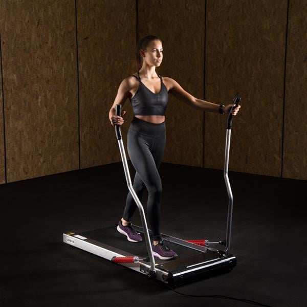 Bieżnia wyposażona w silnik o mocy stałej 0.75 HP (szczytowej 1.5 HP), pas o wymiarach 1205 x 450 mm i zakres prędkości 0,5–6 km/h, co wystarcza do dynamicznego marszu. Kolumny poruszają się płynnie na siłownikach, symulując technikę nordic walking. Przeznaczona do użytku domowego, niekomercyjnego, dla osób do 100 kg.Okiem eksperta