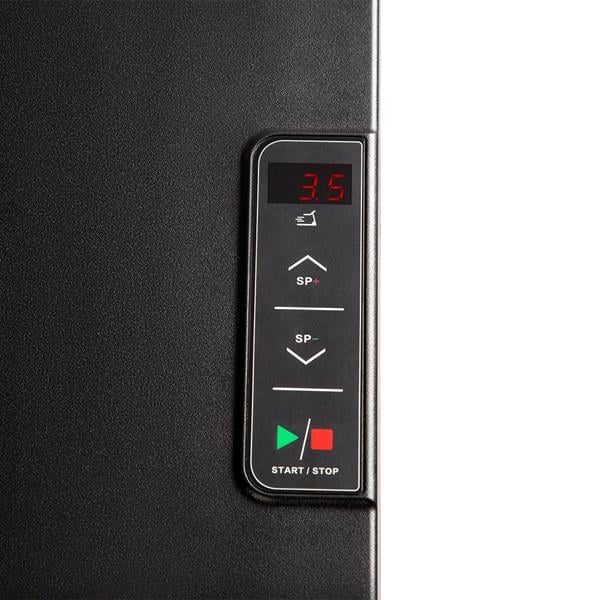 - Panel sterowania pozwala w każdej chwili zwolnić lub wyłączyć bieżnię bez przerywania pracy