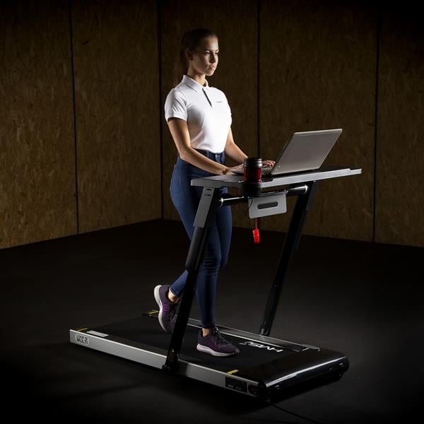 - Ograniczenie prędkości bieżni do 6 km/h zapewnia bezpieczną obsługę laptopa i urządzeń podczas marszu