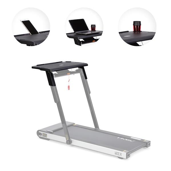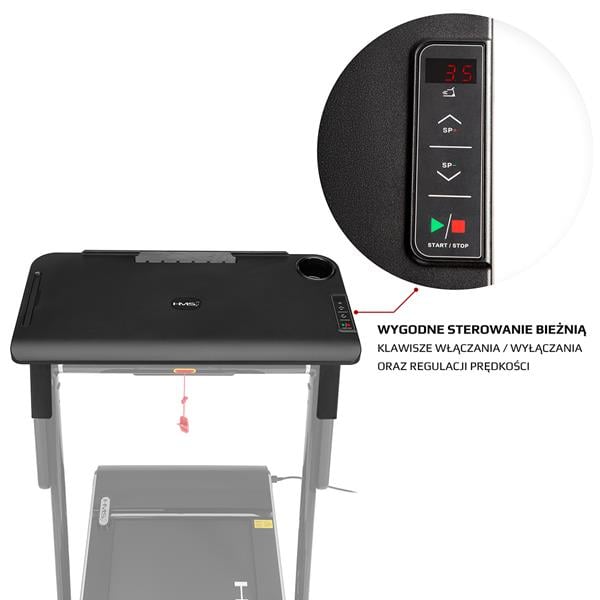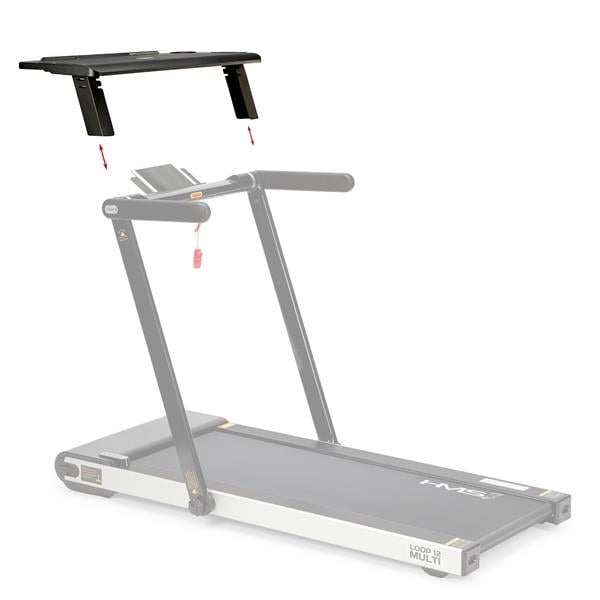 Stolik integruje się z bieżnią LOOP12 HMS poprzez jedno połączenie kablowe. Po podłączeniu automatycznie ogranicza prędkość urządzenia do 6 km/h, co pozwala na bezpieczną pracę na komputerze lub obsługę urządzeń mobilnych w trakcie marszu. Wymiary stolika (405 mm długości, 842 mm szerokości) zapewniają wystarczającą powierzchnię roboczą dla laptopa i akcesoriów. Rozwiązanie to znajduje zastosowanie zarówno w domowych biurach, jak i w przestrzeniach do pracy hybrydowej, gdzie chęć ruchu łączy się z obowiązkami zawodowymi.