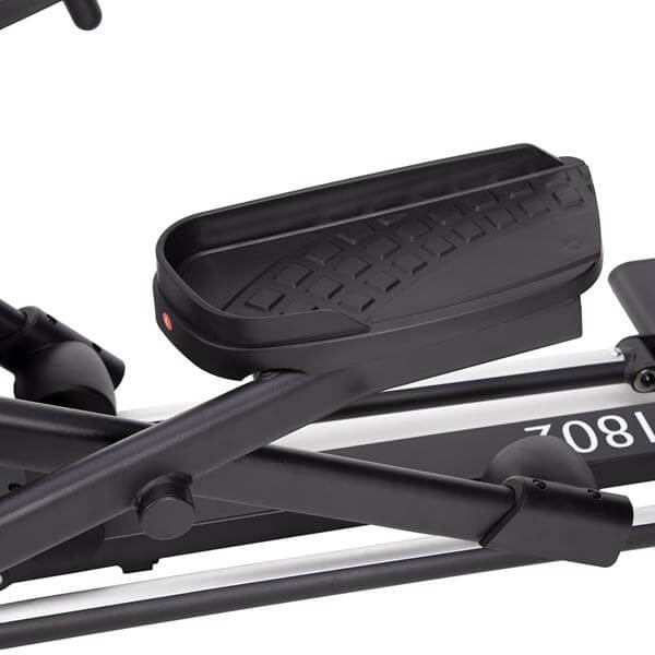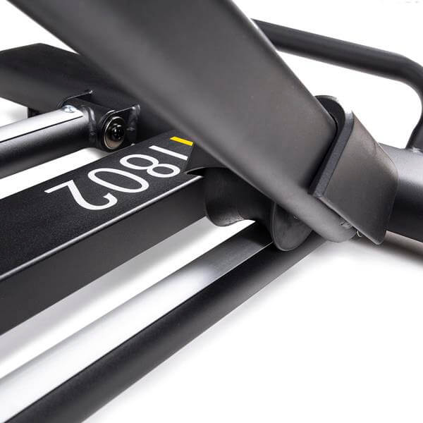 Orbitrek posiada regulowaną długość kroku (do 535 mm), co umożliwia dopasowanie ruchu do wzrostu i preferencji użytkownika. Wysokość kroku można wygodnie regulować za pomocą pomarańczowej dźwigni. Kółka transportowe, stopki poziomujące oraz uchwyt na bidon i smartfon zapewniają wygodę użytkowania i łatwość przemieszczania sprzętu mimo jego solidnej wagi.