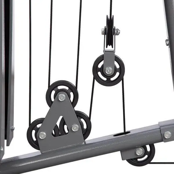 Atlas oparty jest na mocnej ramie stalowej o profilu 6 x 1,5 cm, wyposażonej w dodatkowe osłony ochronne. Konstrukcja została specjalnie wyprofilowana, co wpływa na zwiększoną stabilność całego przyrządu. Pleciona linka stalowa o wytrzymałości do 1000 kg oraz podwójne łożyska zapewniają płynność ruchu i bezpieczeństwo podczas intensywnego treningu.