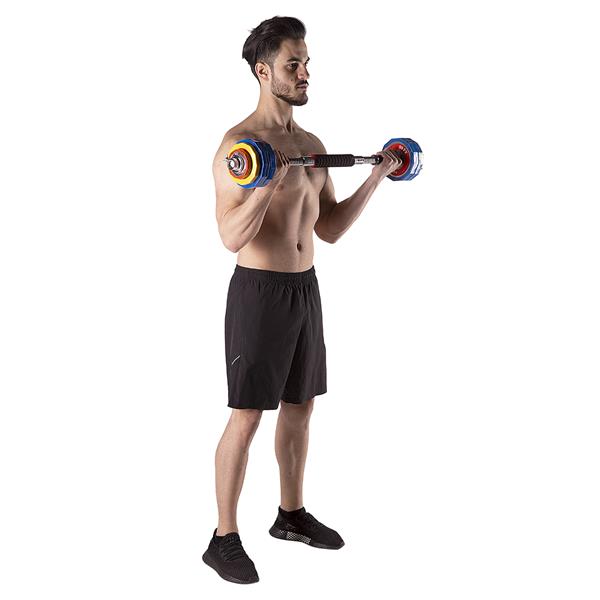 Konstrukcja SKC20 opiera się na klasycznym systemie wymiennych talerzy z gwintowanymi zaciskami. Gryf chromowany zapewnia trwałość i łatwe czyszczenie, a średnica 25 mm jest standardem dla sztangielek treningowych. Specjalne przedłużenie o długości 30 cm i średnicy 32 mm umożliwia połączenie dwóch sztangielek w sztangę o całkowitej długości około 95 cm, co otwiera możliwość ćwiczeń wymagających dłuższego gryfu — takich jak wiosłowania czy przysiady. Zestaw sprawdza się zarówno w treningach siłowych z sztangielkami, jak i w ćwiczeniach wymagających sztangi długiej. Zaciski gwintowane z wzmocnieniem śrubą gwarantują stabilność obciążenia niezależnie od intensywności ruchu.Okiem eksperta