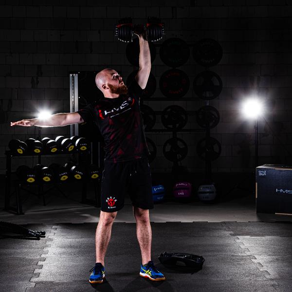 - Zakres regulacji od 2,2 do 23,3 kg – jedna sztangielka zastępuje wiele hantli o różnych wagach, oszczędzając miejsce i koszty
