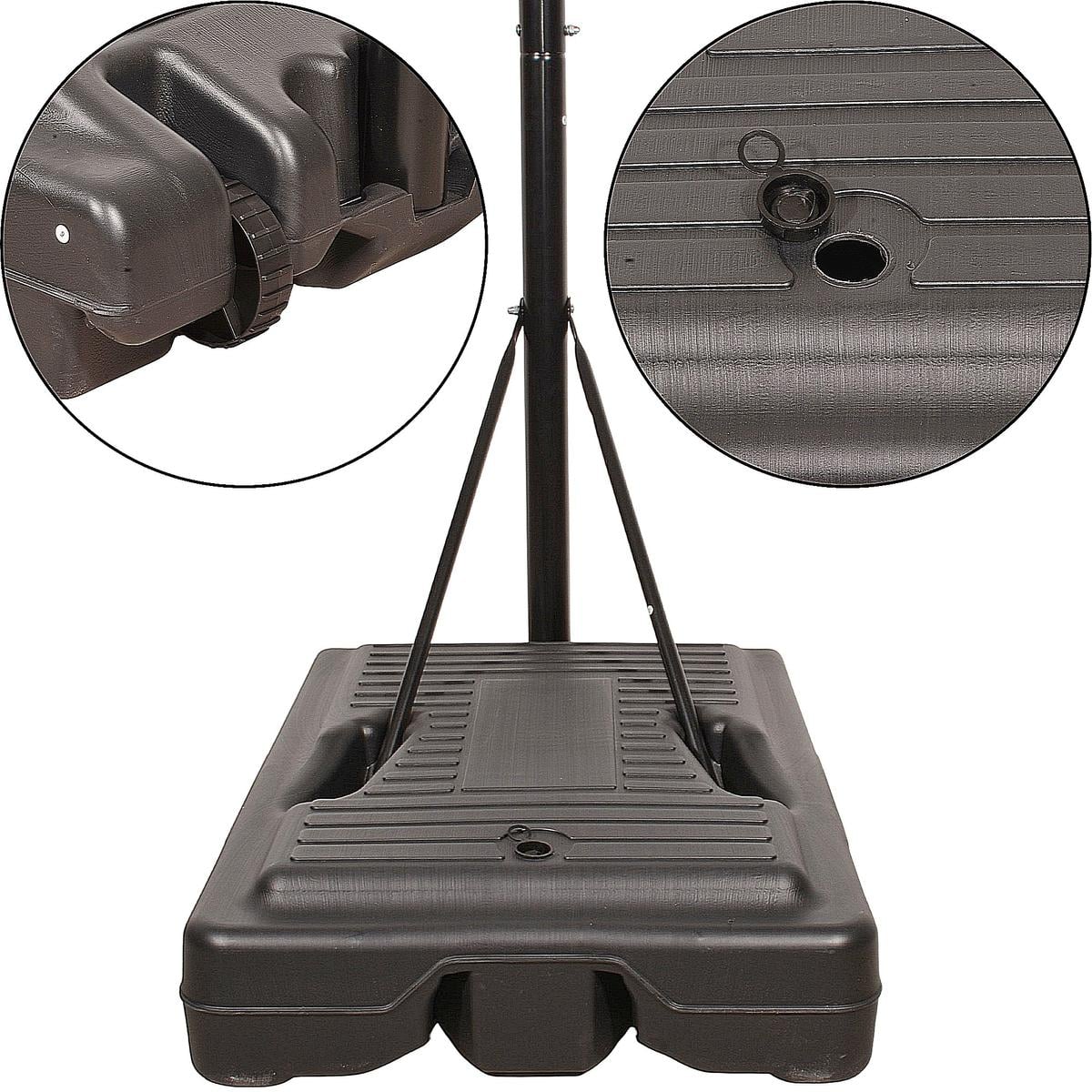 - Podstawa jest wzmocniona i można ją wypełnić piaskiem lub wodą, zapewniając stabilność na każdym typie podłoża,