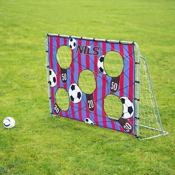 Bramka NILS NT7788 2w1 to wolnostojący zestaw piłkarski dla młodych adeptów futbolu i amatorów. Idealna do treningów strzałów w ogrodzie lub na boisku, z panelem umożliwiającym precyzyjne celowanie i rywalizację punktową.Kluczowe korzyści