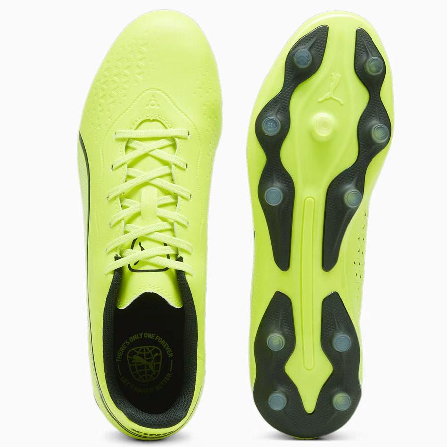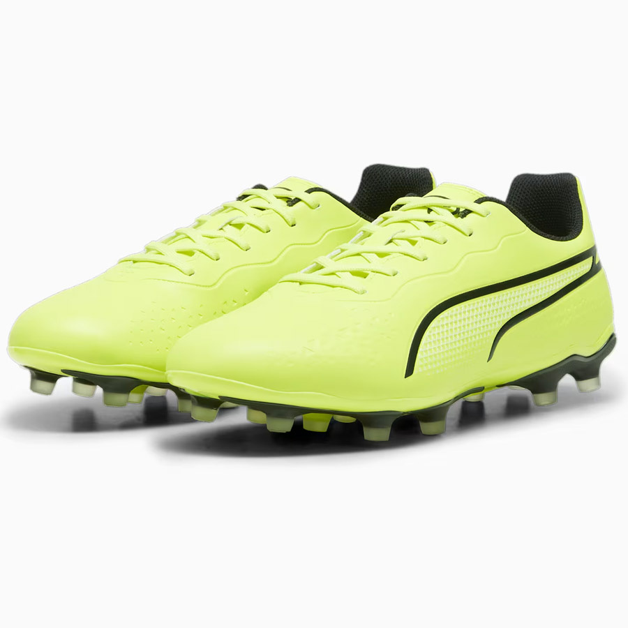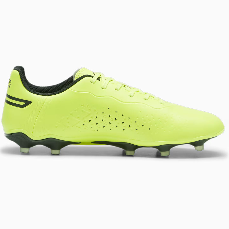Korki męskie Puma King zapewniają lepszą przyczepność i szybkość reakcji podczas treningów odbywających się na naturalnej nawierzchni. Symetrycznie sznurowana cholewka. Materiał wierzchni z miękkiej mikrofibry. Lekka podeszwa ze stożkowymi korkami zapewnia przyczepność. Cholewka zawiera co najmniej 20% materiałów pochodzących z recyklingu.