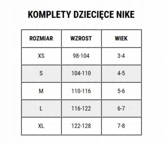 | Wzrost (cm) | 122 - 128 | 128 - 137 | 128 - 137 | 137 - 147 | 137 - 147 | 147 - 158 | 147 - 158 | 158 - 170 | 158 - 170 |