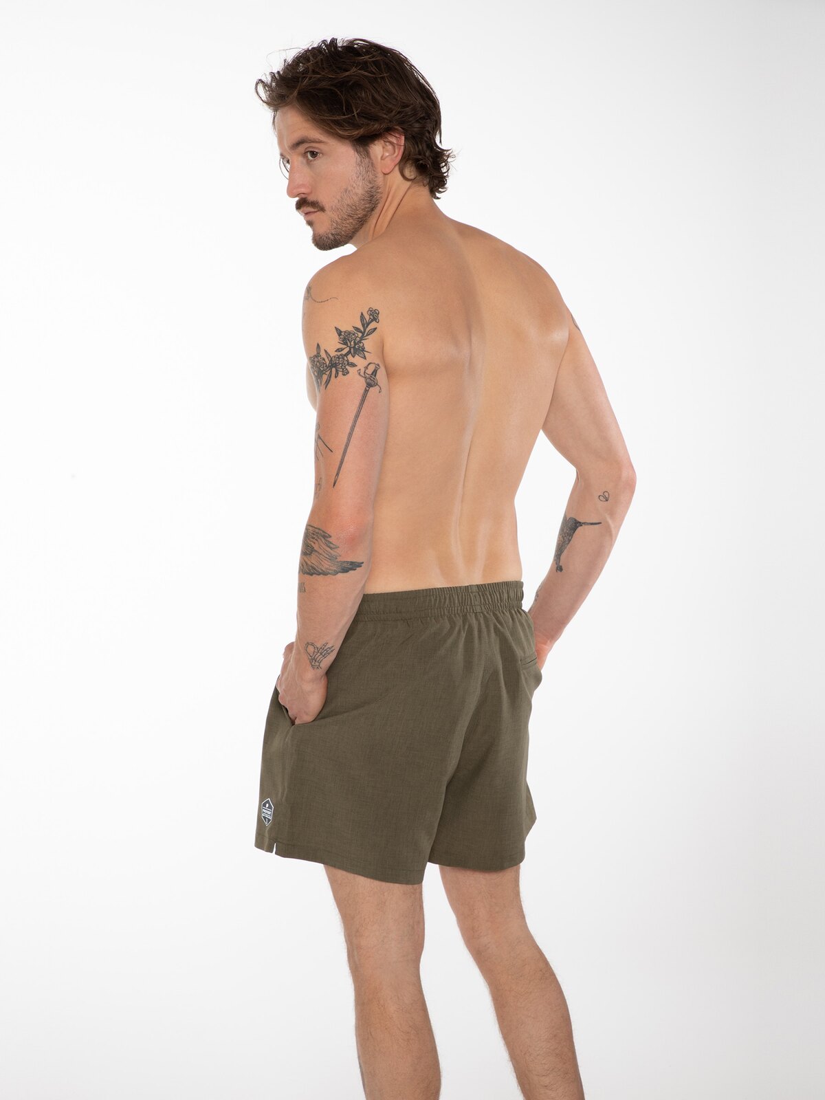 Przemyślana konstrukcja obejmuje boczne kieszenie oraz praktyczną tylną kieszeń zapinaną na zamek, wyposażoną w smycz na klucze – co pozwala na bezpieczne przechowywanie drobiazgów nawet podczas aktywnego wypoczynku. Długość sięgająca do połowy uda zapewnia swobodę ruchów i podkreśla sportowy charakter produktu.