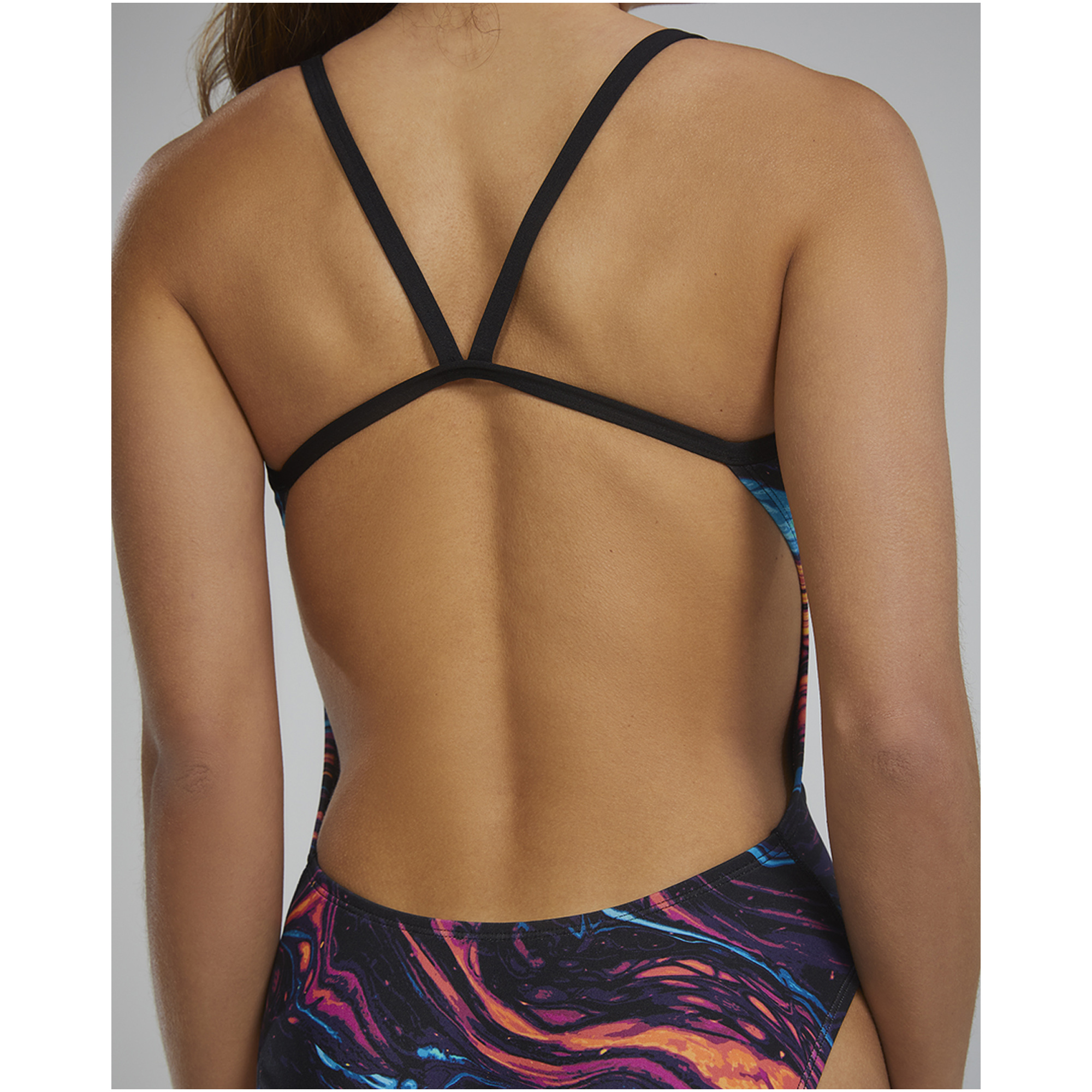 - Odkryte plecy i wysoko wycięte nogawki zapewniają pełną swobodę ruchu i nowoczesny wygląd