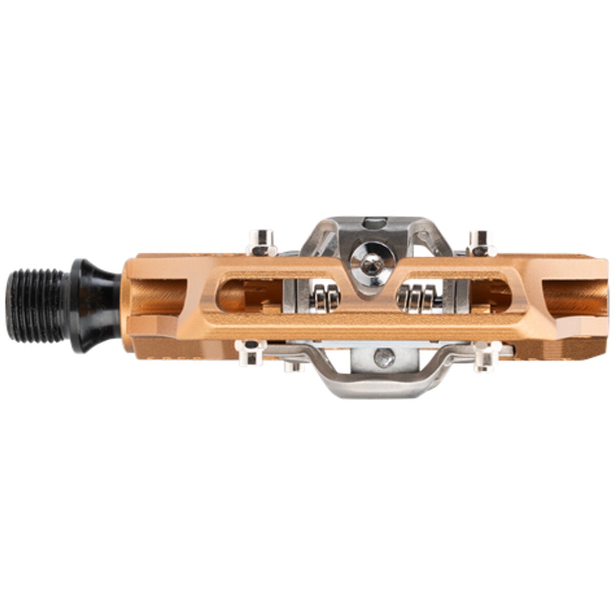 Dwa regulowane mechanizmy zatrzaskowe pozwalają na szybkie i wygodne wypinanie buta w sytuacjach awaryjnych, a 8 wymiennych pinów po każdej stronie dodatkowo zwiększa przyczepność i pewność na stromych odcinkach. Powiększona platforma oraz przemyślany profil gwarantują optymalne wsparcie zarówno podczas jazdy wpiętej, jak i przy klasycznym podparciu stopy. Odpowiednie wyważenie sprawia, że pedały samoczynnie ustawiają się w pozycji gotowej do wpięcia.