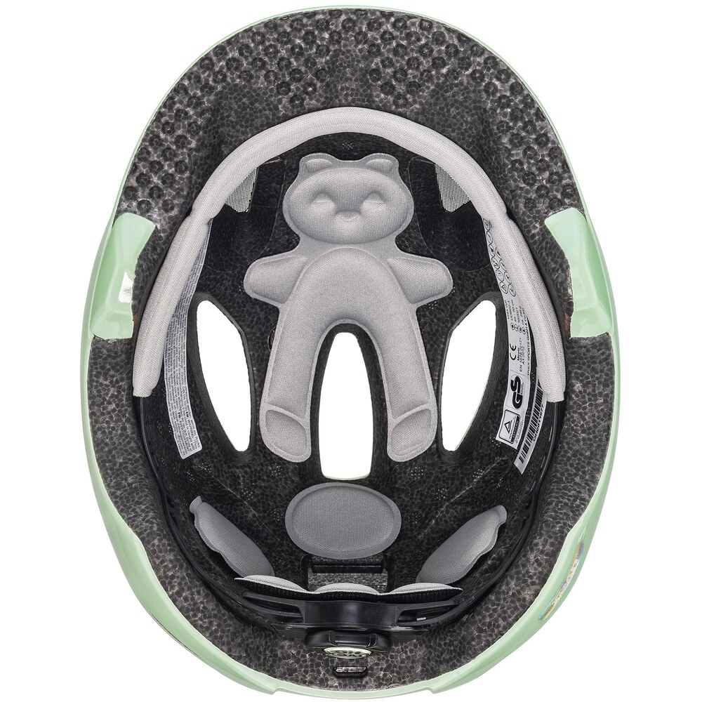 Kask wykonano w technologii Inmould, łącząc zewnętrzną skorupę z polikarbonu z wewnętrzną pianką EPS dla maksymalnej odporności na uderzenia i lekkości. Wydłużona konstrukcja w potylicy i okolicach uszu lepiej chroni głowę malucha. Sprawdza się w foteliku rowerowym dzięki wkładce amortyzującej, na wybojach i podczas pierwszych przygód na rowerku biegowym czy hulajnodze.