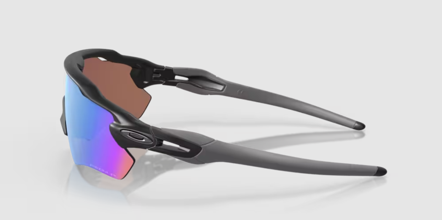 Wykonane z lekkiego, ale niezwykle wytrzymałego tworzywa O Matter™, okulary sportowe RADAR EV PATH typu shield zostały wzbogacone o metalowe akcenty w kształcie eliptycznej ikony Oakley. Ich szczególnym atutem są gumowe zauszniki i poduszeczki na nos wykonane z materiału Unobtainium®, który zwiększa komfort użytkowania, szczególnie podczas intensywnego wysiłku.
