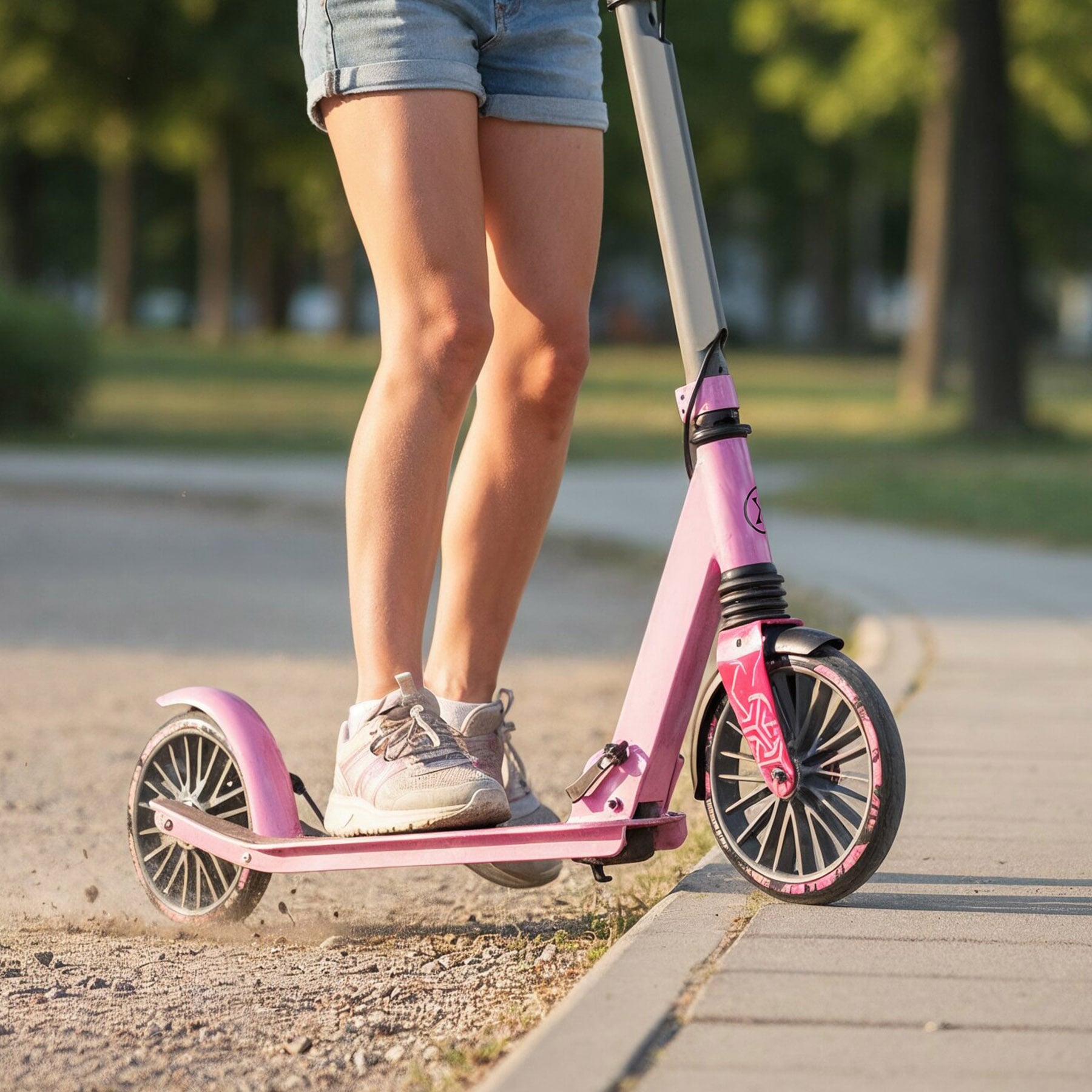 Konstrukcja z aluminium 7005 zapewnia wytrzymałość przy niskiej wadze. Koła PU 145 mm z łożyskami ABEC-5 rolują płynnie po asfalcie, chodnikach czy płytach. Model sprawdza się w rekreacyjnej jeździe miejskiej, na placach zabaw i krótkich dystansach, nie jest przeznaczony do ekstremalnych skoków.