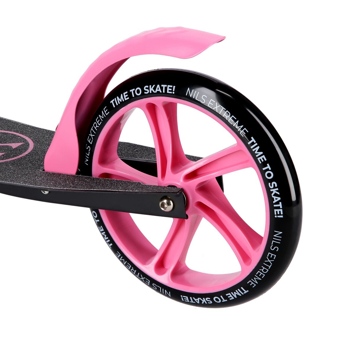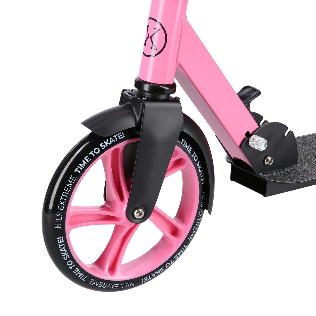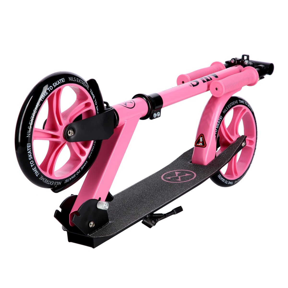 Przed pierwszą jazdą sprawdź napięcie śrub kierownicy i podestu, aby zapewnić maksymalną stabilność, szczególnie przy maksymalnym obciążeniu 100 kg.Cechy NILS EXTREME hulajnoga damska miejska składana z dużymi kołami HM2009 różowa