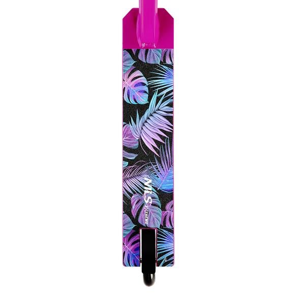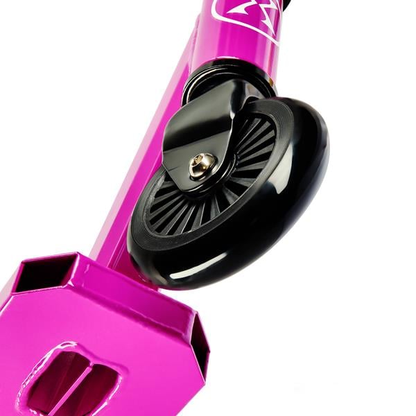 Hulajnoga stunt jest pozbawiona mechanizmu składania konstrukcji czy też systemu regulacji wysokości kierownicy – tego typu rozwiązania mogłyby osłabić całą konstrukcję, co oczywiście nie jest pożądane w przypadku sprzętu wyczynowego, gdzie wytrzymałość to podstawa. W trakcie wykonywania trików sprzęt spotyka się z bardzo dużym obciążeniem. Hulajnoga posiada solidny, trójkomorowy deck co umożliwi satysfakcjonujące wykonywanie trików zarówno początkującym, jak i zaawansowanym stunterom.