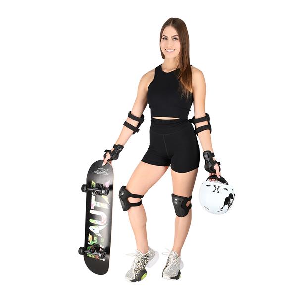 H8334 Nils Extreme to zestaw ochraniaczy na nadgarstki, łokcie i kolana. Wykonany z wysokiej jakości materiałów. Skorupa zaprojektowana z mocnego i lekkiego tworzywa, które w maksymalnym stopniu zabezpieczają nadgarstki, łokcie i kolana przed urazami.. Wszystkie ochraniacze wyposażone są w zapięcie na rzepy, dzięki czemu utrzymują ochraniacze we właściwym miejscu. Zaprojektowane tak, aby użytkownik czuł się nie tylko bezpiecznie i komfortowo, ale również stylowo dzięki klasycznej kolorystyce w oryginalnym designie.