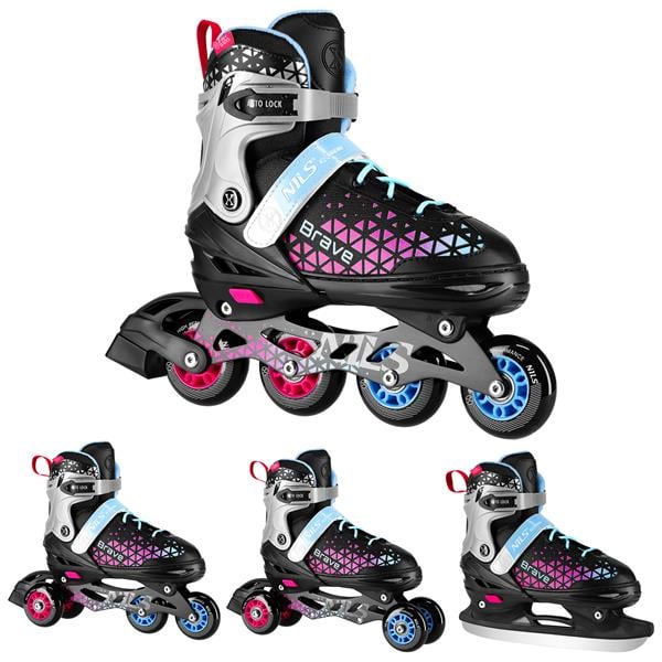 Łyżworolki BRAVE 4w1 NA18190A marki Nils Extreme to wszechstronne rozwiązanie dla osób, które cenią sobie funkcjonalność i możliwość korzystania z jednego sprzętu przez cały rok. Łyżworolki te oferują możliwość zamiany płóz, dzięki czemu mogą być używane zarówno jako rolki latem, jak i łyżwy zimą. To idealne rozwiązanie dla młodzieży i dorosłych, którzy chcą aktywnie spędzać czas niezależnie od pory roku.
