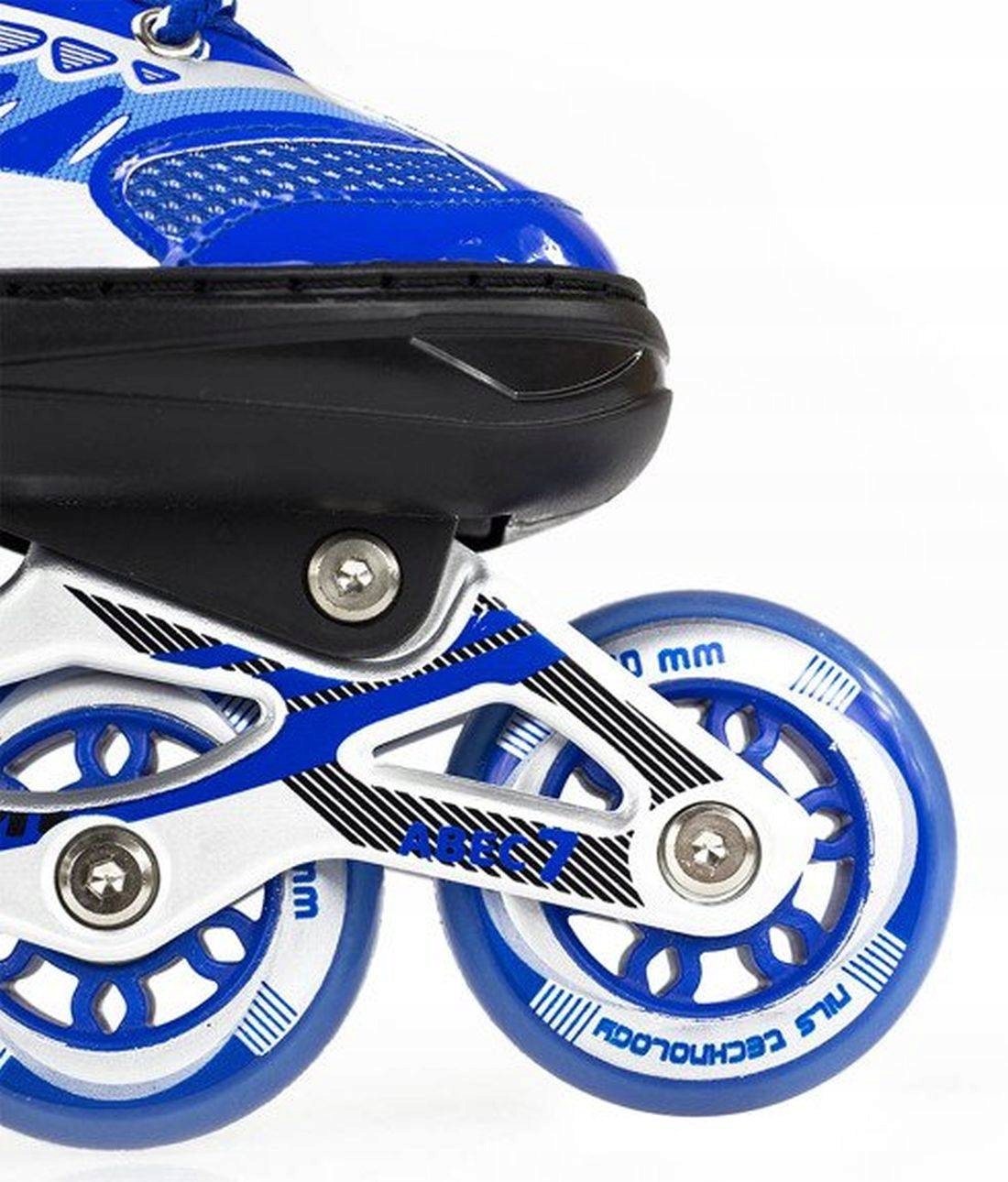 Łyżworolki Nils Extreme NJ1828A w wersji niebieskiej to model rekreacyjny dedykowany dzieciom i początkującym. Regulowany rozmiar S (31-34), M (35-38), L (39-42) pozwala na dopasowanie do rosnącej stopy, idealne na pierwsze przygody z jazdą po asfalcie lub chodnikach.