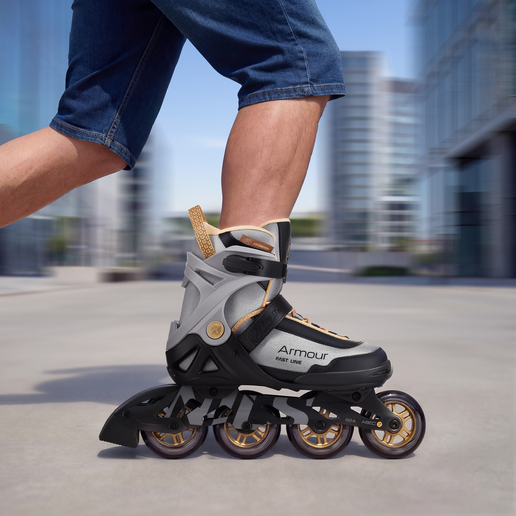 Rolki wyposażone w łożyska ABEC 5 zapewniają płynną jazdę na średnich prędkościach. Płozy z twardych rolek poliuretanowych dobrze trzymają się asfaltu i chodników. Nadają się do rekreacji miejskiej, dojazdów do pracy czy treningów fitness na rolkach.