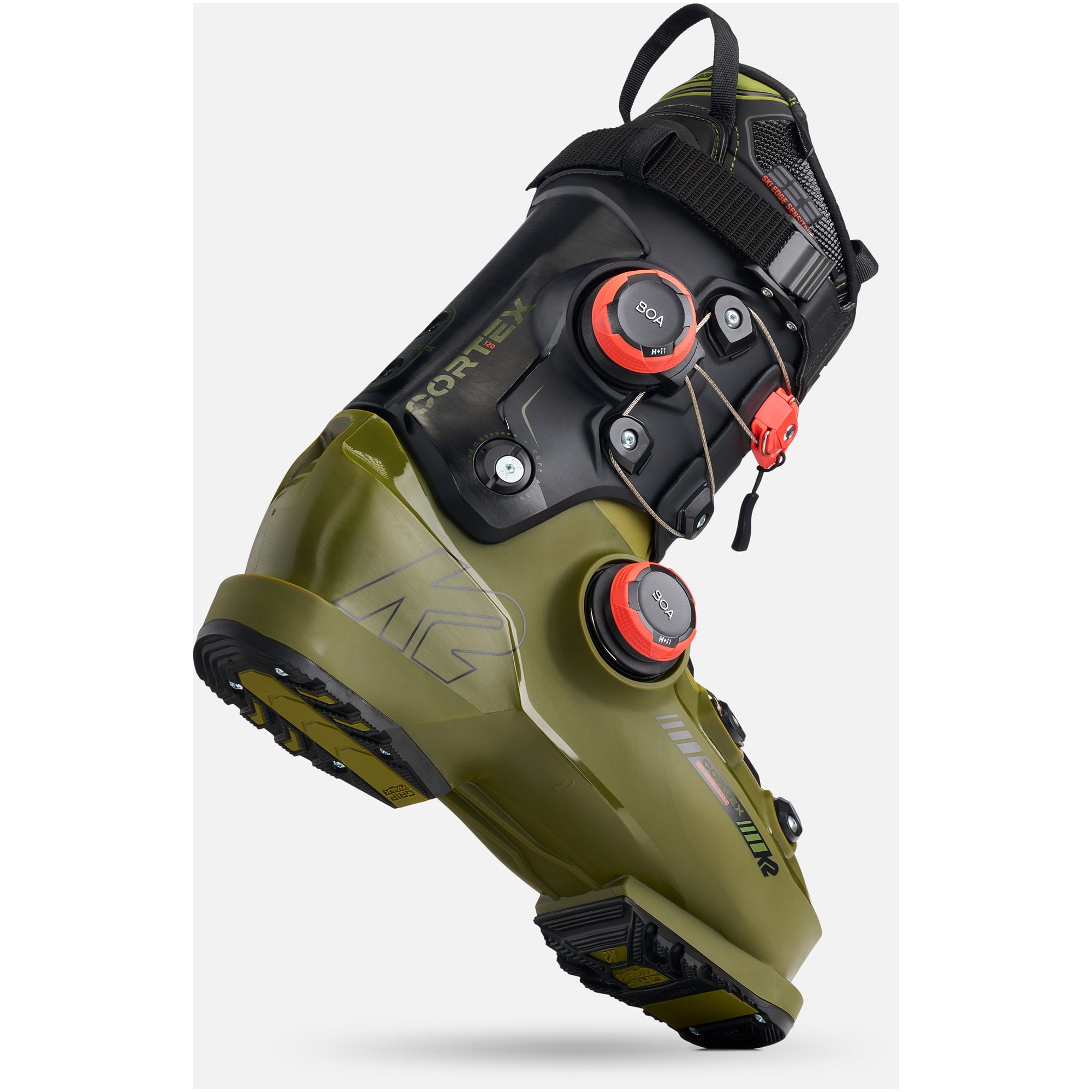 System BOA® Fit w mankiecie i skorupie składa się z trzech integralnych części: mikroregulowanego pokrętła, lekkich ale niezwykle wytrzymałych sznurowadeł oraz prowadnic o niskim tarciu. Konfiguracja ta poprawia dopasowanie i wydajność buta, umożliwiając szybką i precyzyjną regulację podczas jazdy. Cortex 120 Zonal BOA sprawdza się zarówno na trasach przygotowanych, jak i w terenie off-piste, gdzie sztywna konstrukcja zapewnia stabilność i kontrolę.
