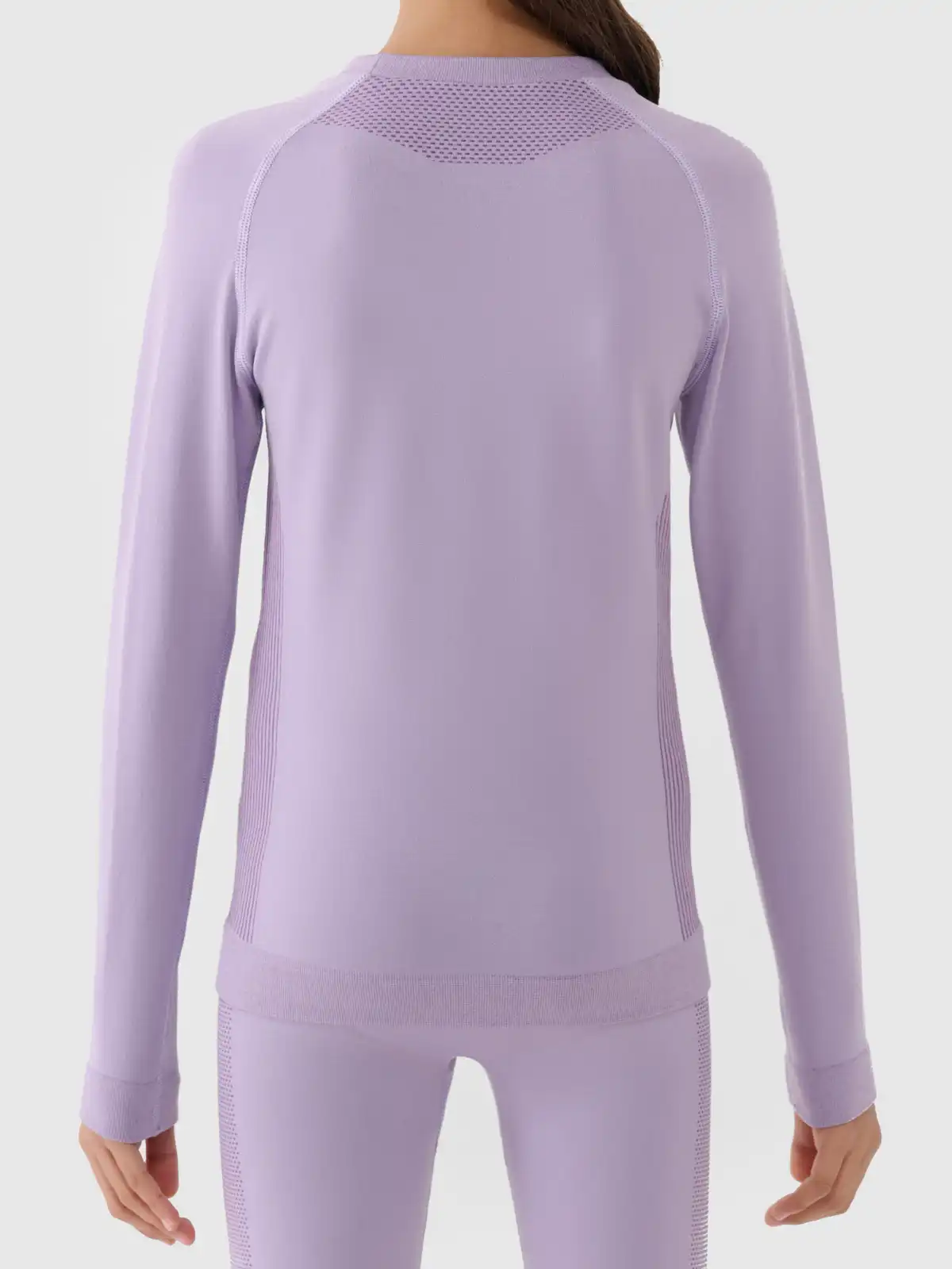 Zestaw składa się z dopasowanej koszulki z długim rękawem oraz legginsów, wykonanych z elastycznego materiału o właściwościach termoregulacyjnych. Tkanina aktywnie odprowadza pot na zewnątrz, przyspieszając schnięcie i minimalizując uczucie chłodu podczas przerw w ruchu. Konstrukcja zapewnia dobrą wentylację i swobodę ruchów dzięki dodatkom elastanu, a płaskie szwy i miękka faktura dbają o komfort skóry, zapobiegając otarciom. Anatomiczny krój dopasowuje się do ciała, utrzymując warstwę bazową blisko skóry i zwiększając skuteczność izolacji cieplnej.