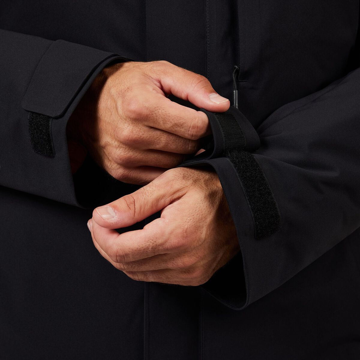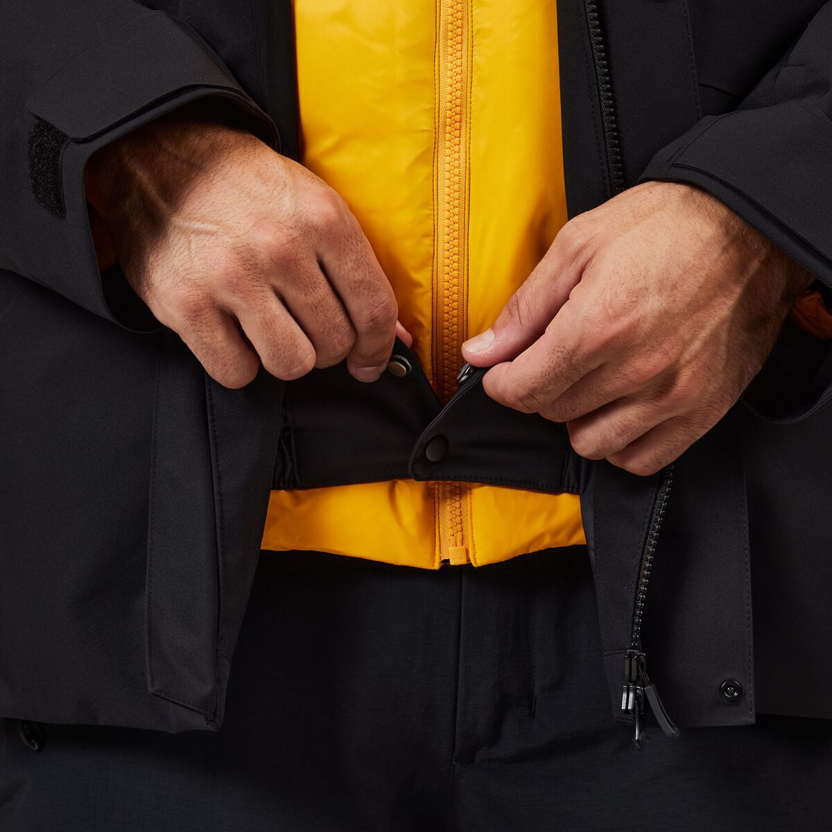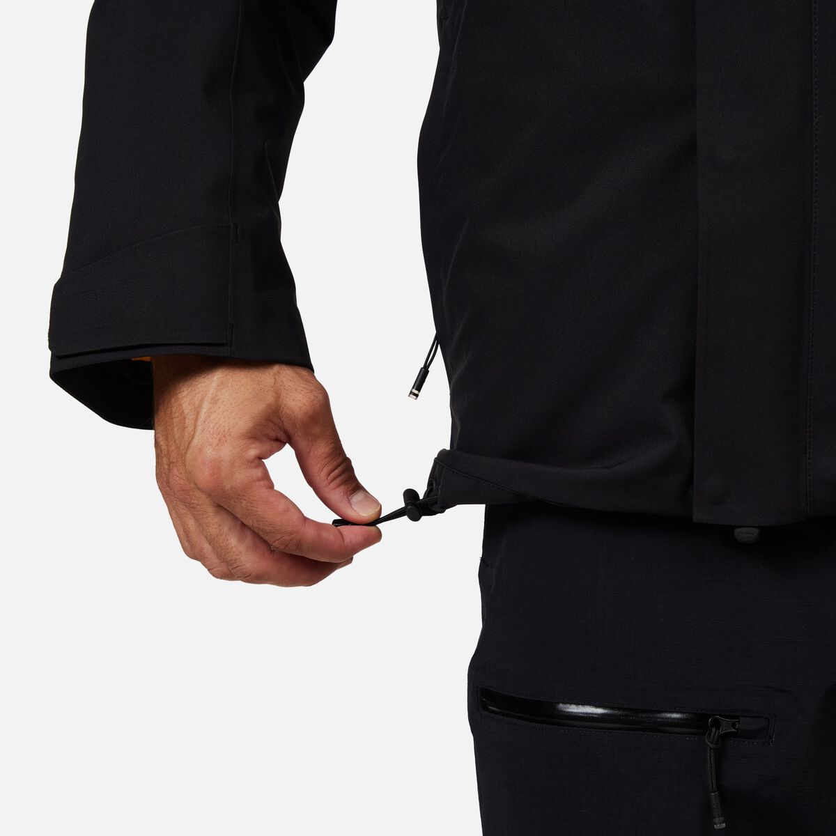 - Elastyczne mankiety i regulowany dół zapobiegają przedostawaniu się śniegu i zimnego powietrza.