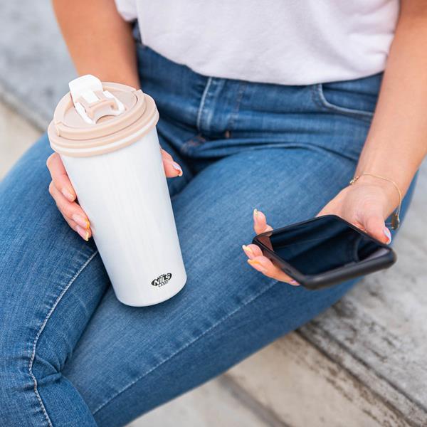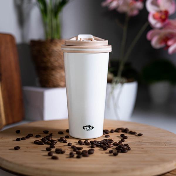 Kubek termiczny NCB18 marki Nils Camp cechuje zarówno prosta konstrukcja jak i oryginalny design! NCB18 to kubek termiczny wykonany jest ze stali nierdzewnej o podwójnej ściance, dzięki czemu gwarantuje utrzymanie temperatury ciepłych napoi przez 12 godzin, a zimnych przez 24 godziny. Kubek termiczny NCB18 posiada bardzo wygodny system otwierania. Wystarczy pociągnąć do góry za uchwyt otwierania i gotowe. Kubek posiada również dodatkowy uchwyt, który może być przydatny podczas transportu. Dużym atutem jest również to, że dolna część kubka posiada antypoślizgową gumę, co zwiększa bezpieczeństwo przed rozlaniem gorącej kawy czy herbaty podczas gdy kubek jest otwarty!