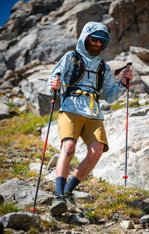 Konstrukcja Z-pole z trzech sekcji i szerokimi rurkami węglowymi zapewnia sztywność i wytrzymałość na stromych podejściach oraz długich trasach. Technologia FlickLock+ z miękkim dotykiem pozwala na precyzyjne dostosowanie długości bez użycia narzędzi, a oddychające paski air mesh i pianka Bloom oferują alternatywne pozycje uchwytu w stromym terenie. Kije sprawdzą się w hikingu, backpackingu i trekkingach całorocznych.