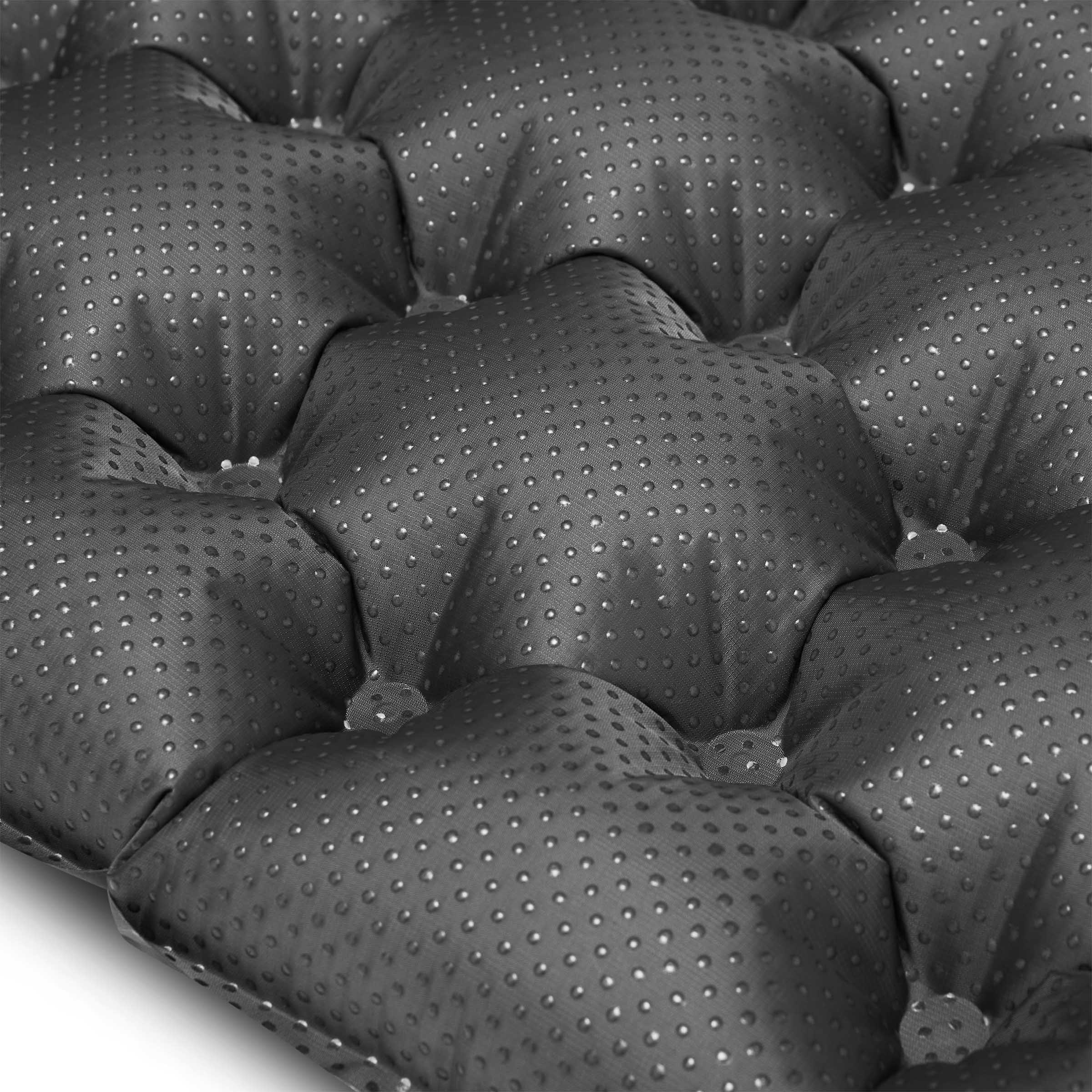 - Antypoślizgowe nakropienie Stedy Sleep System na wierzchniej stronie zapobiega zsuwaniu się materaca podczas snu, szczególnie ważne w hamakach i na pochyłościach